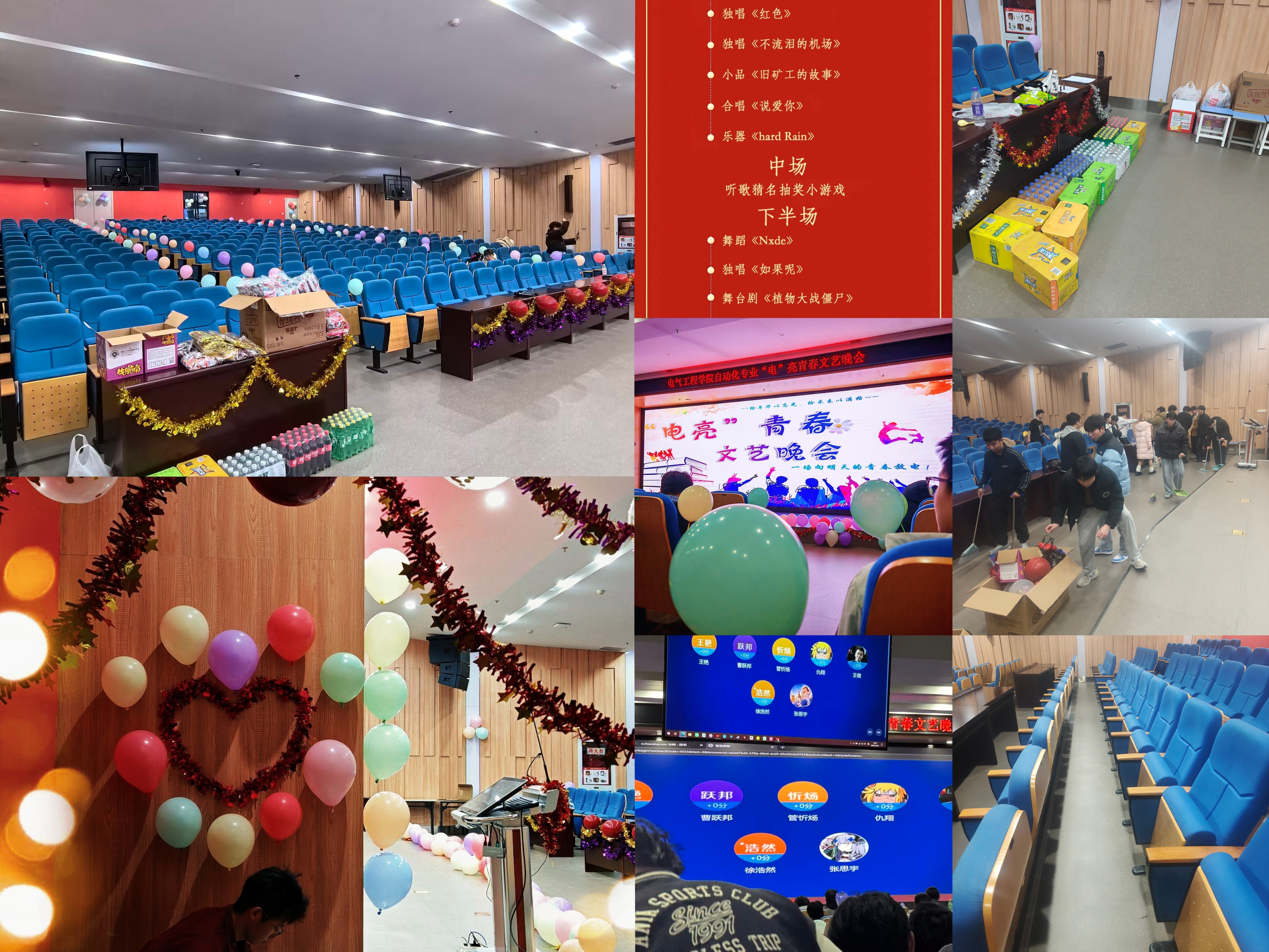 从中场轻松有趣的“听歌猜名”“看图猜动画人物”互动,到每一个节目的自如衔接,这场晚会从导演、编排、主持、灯光、音控、物料、后勤到现场协调,全部由学生自主分工、协作完成。晚会结束后,同学们自觉整理场地、带走所有垃圾,将会场恢复如初。这些细节不仅体现了自动化人的组织力与责任感,更流淌着一种温暖的集体自觉。