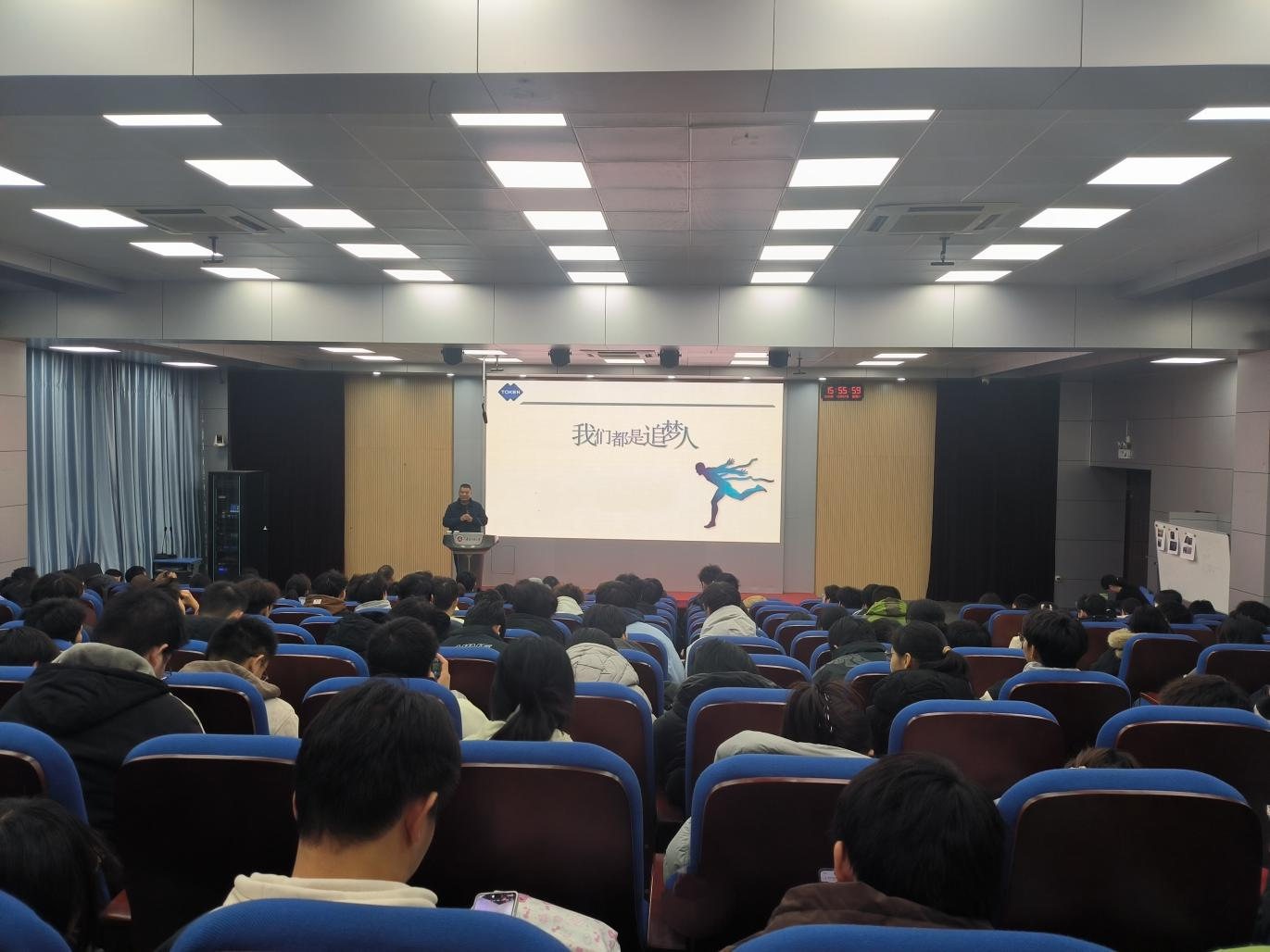 李猛以幽默风趣的语言风格、用一个个鲜活有趣的校园回忆、职场趣事,拉近了与在场学子的距离。他叮嘱同学们,大学时光是人生中最宝贵的阶段,既要珍惜分分秒秒的学习时光,打好成长根基,更要珍惜与老师、同窗的真挚情谊,这些都将成为人生路上最珍贵的财富。他鼓励同学们在求学路上既要仰望星空,也要脚踏实地,在欢声笑语中积累能量,在互帮互助中共同成长。