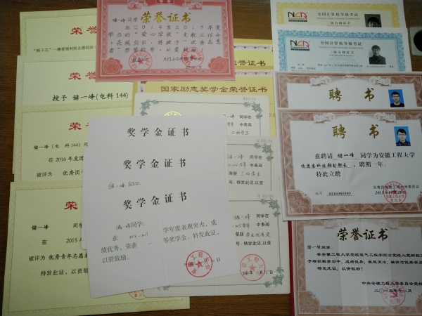 自2014年9月进入大学以来,储一峰一直把学习看作自己大学生活的重心,努力刻苦,勤奋好学,成绩一直名列前茅。对于所学的专业知识,他能够积极钻研,勤学苦练,注意理论与实践相结合,培养实际动手能力。他深知,“学习就必须求真学问,求真理、悟道理、明事理,不能满足于碎片化的信息、快餐化的知识。”因为所学专业是电子信息科学与技术,他一直以来十分认真地对待专业课的实验与课程设计,在过程中遇见的困难会与老师进行深入的探讨,与同学们进行交流,有时为了一个实验结果的调试他会在电脑前挑灯夜战到深夜,这种对学术研究的执着对于大学生来讲十分宝贵。虽然身兼校团委学生干部、班干、校勤工俭学工作人员等多个岗位,但是他能较好的协调自己的工作和学习,在工作方面得到老师们赞扬的同时,学习上成绩也十分突出。因为一直向往“985”院校严谨的学术和科研氛围,他在2018年研究生考试中毅然报考华中科技大学这所工科强校,在复习过程中认真规划自己的复习路径,认真刻苦,在初试中取得398的高分成绩,又在复试中调节自身压力,从容不迫,击败一批来自武汉大学,武汉理工大学等“双一流”院校的竞争对手,顺利录取华中科技大学电信学院硕士研究生,即将在武汉光电国家实验室展开电子方向的学术研究。他牢记,“国势之强由于人,人材之成出于学。”刻苦学习才是大学生成长成材,为国奋斗的必经途径。