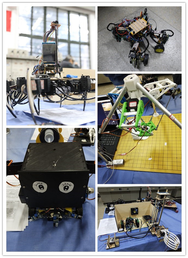 在评审过程中,评委老师与参赛选手进行了积极深入的交流。参赛选手向评委老师展示了自己的设计作品并详细讲解了设计原理与理念,评委老师仔细聆听并针对作品给参赛选手提出了适当的改进建议。经过评委老师的评审,荣摘桂冠的是由自动化171鲁倩主创的“双态变形机器人”和由通信173杨笑笑主创的“水下探测潜水艇”。获得二等奖的是“球型机器人”、“仿生机械鱼”、“棋盘清理机器人”以及“履带复合式机器人”。“六向载物机器人”、“智能地球仪”、“机械臂”、“仿真机器狗”、“家庭小管家”以及“智能wifi插座”获得三等奖。