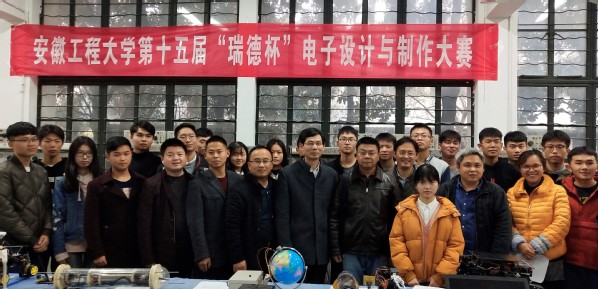 为营造良好的校园科技创新氛围,培养大学生的创新实践能力,提高大学生针对实际问题进行电子设计制作的能力,给全校电子设计爱好者提供一个展示自己的舞台。11月28日下午,由校团委主办、 jav 承办的校第十五届“瑞德杯”电子设计与制作大赛在电气实验楼一楼举办。比赛邀请了教务处副处长张春、研究生部副部长、副主任王海、机械学院裴九芳、数理学院葛强担任评委。 jav 党委书记杨会成、党委副书记郭全根、校团委副书记郭广春、创新学院副院长王冠凌等领导老师莅临比赛现场。