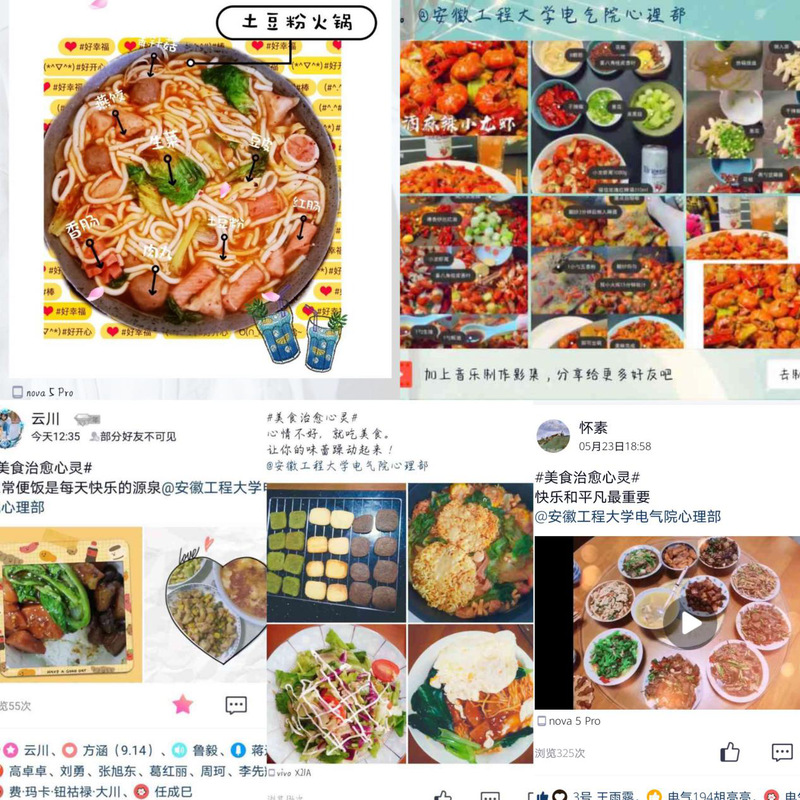 为进一步缓解学生在疫情期间的心理压力,提高学生心理自我疏导与自我排解的能力, jav 利用网络平台,精心组织开展了“用‘心’战‘疫’,守护成长”的“5.25”心理健康教育主题活动。本次活动分为“‘心’体验,‘心’故事,‘心’成长”疫情期间心情故事分享与“美食治愈心灵”为家人制作一道美食分享两个部分。