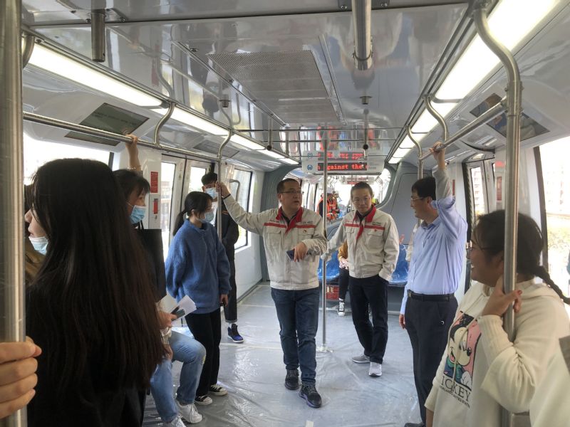 在中车浦镇庞巴迪运输系统有限公司的安排下, jav 师生首先乘坐体验了在建中的目前国内首屈一指的芜湖轨道交通跨座式单轨车辆,公司技术负责人向 jav 师生介绍了产品的设计理念与创新之处。