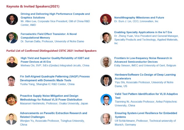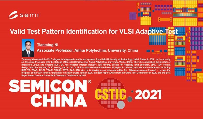 近日,亚洲最大、最全面、最具影响力的年度半导体技术大会——中国国际半导体技术大会(CSTIC 2021)在上海国际会议中心隆重举行,会议由长电集成电路(绍兴)有限公司 CEO梁新夫博士(Dr. Steve X. Liang)主持。此次技术大会涵盖半导体技术的各个方面,以制造和先进技术为重点,围绕器件设计、集成、材料、设备以及新兴半导体技术、电路设计和硅材料应用。我校 jav 青年教师倪天明博士作为特邀演讲嘉宾受邀参加,并在大会上作了题为《Valid Test Pattern Identification for VLSI Adaptive Test》的邀请报告,受到与会人员的热烈欢迎,有助于进一步提升我校集成电路学科的国际学术影响力。