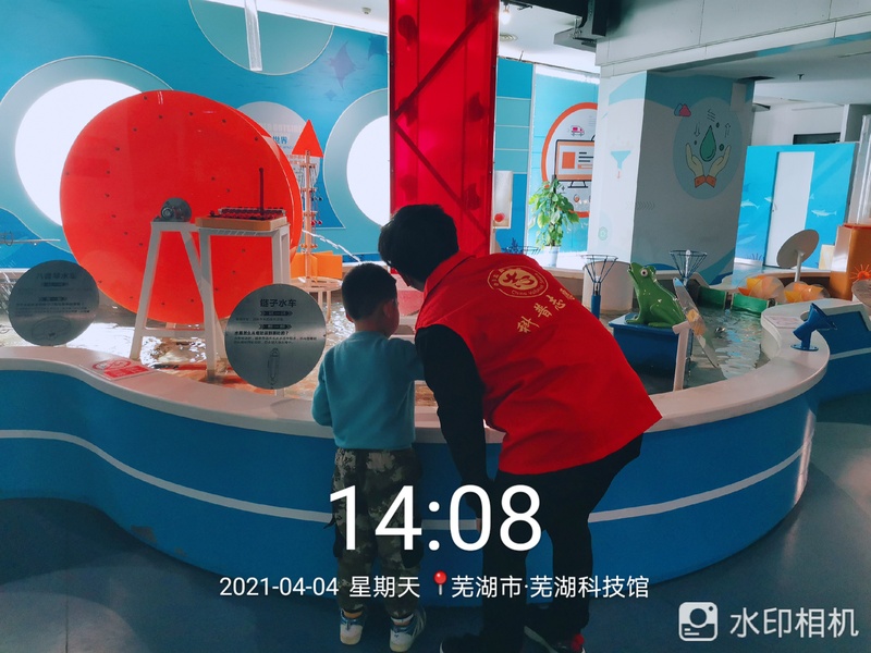近日, jav “望日莲”芜湖科技馆科普志愿服务项目的8名志愿者来到科技馆开展志愿服务活动。在近八个小时的志愿服务中,青年志愿者立足岗位职责,认真向参观者讲述科技馆中那些天马行空又引人入胜的科学知识,红色小马甲与川流不息人群交织成一道靓丽的风景线。