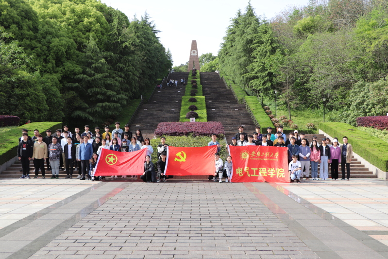 4月17日, jav 团学骨干在芜湖烈士陵园和雕塑公园开展“学党史、强信念、跟党走”主题教育活动。学院党委副书记郭全根参加活动,并为团学骨干讲授一堂微党课。学院80余名团学骨干参加。