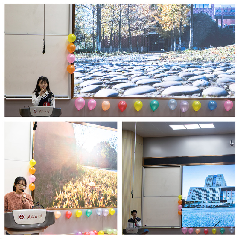 活动由两部分组成。首先由33名新生分为11个小组,精心拍摄了学校“最美的景”,并围绕其背后的故事,展开精彩演讲,阐释他们心中安工程“最美的景”深刻蕴意。活动中,团队成员精诚合作,照片拍摄、文案撰写、现场答辩分工有序,通过对校园“最美的景”的讲述,帮助同学们尽快了解校园文化环境,增强对学校的归属感和认同感,激发对学校的热爱之情。