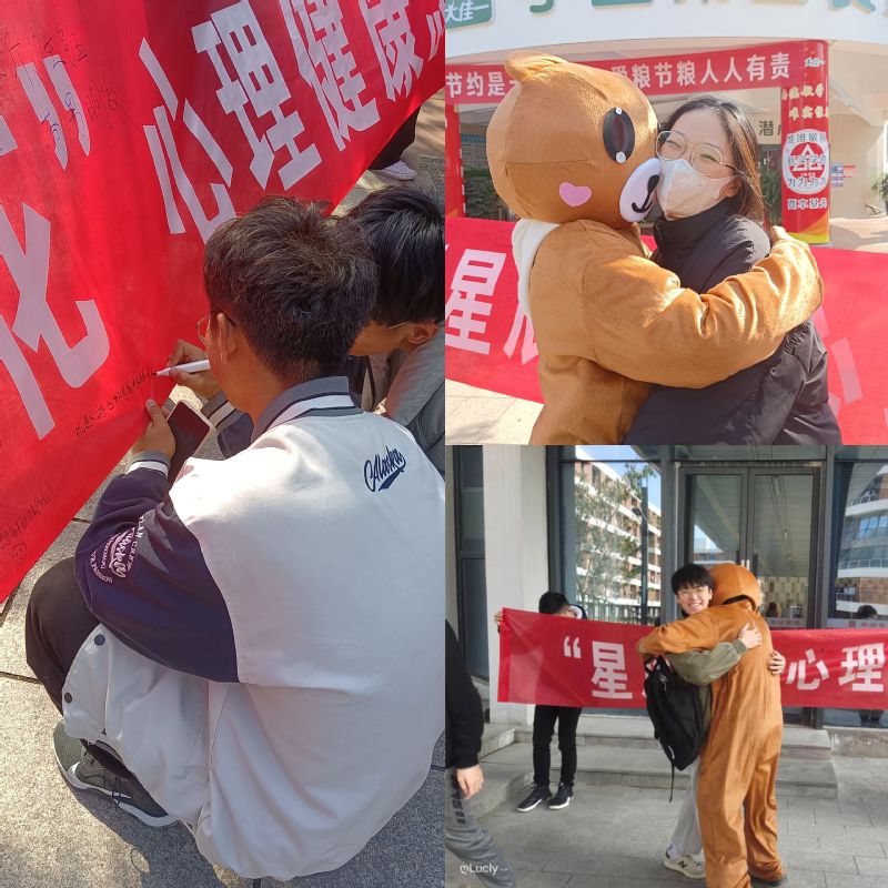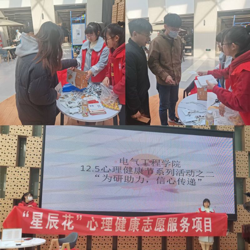 本次活动为学院“星辰花”心理健康志愿服务项目。活动分为“温暖的抱抱”“为研祝福,信心传递”“心灵之美,筑梦远航”专场音乐会三个子活动。“温暖的抱抱”子活动旨在通过拥抱的方式打开人与人之间的隔阂,传递冬日里的温暖。志愿者身着卡通人偶服装,向学校本部和国际工程师学院往来的学生寻求拥抱,学生们纷纷热情拥抱、合影留念,并在横幅上写下心愿;“为研祝福,信心传递”子活动旨在为考研学子加油打气、增强信心,减轻备考压力。志愿者在国际工程师学院南苑食堂为2018级考研学子送上2019级、2020级、2021级学弟学妹手写的寄语卡片,并送上小礼物,一件件卡片和礼物被送出,一份份鼓励和支持被传达;“心灵之美,筑梦远航”专场音乐会子活动旨在帮助学生梳理情绪、释放压力,让心情回归有序和松弛、平稳和宁静,并学习利用音乐为自己减压的方法。校艺术教育中心器乐团团长电气中外202黄健祺、校吉他协会副会长电气中外202陈佳豪等学生在国际工程师学院南苑食堂现场演绎《summer》《大鱼》等大学生喜爱的经典音乐作品,抖音公众账号“AHPU电气院心理部”同步直播。
