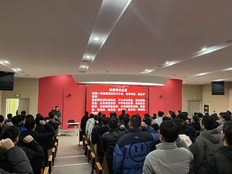 随后,国家奖学金获得者武鹏宣读《诚信考试倡议书》,全体人员集体宣誓。