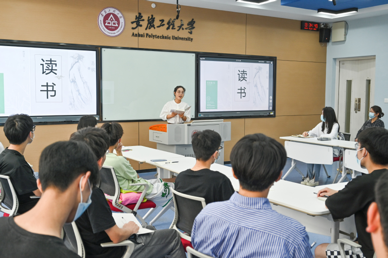5月18日, jav 在国际工程师学院校区X201示范教室举办“师生共读”活动。活动由校级领读人李永明老师和袁一鸣老师分别主持。学院团学骨干、入党积极分子代表等40余名同学参加活动。