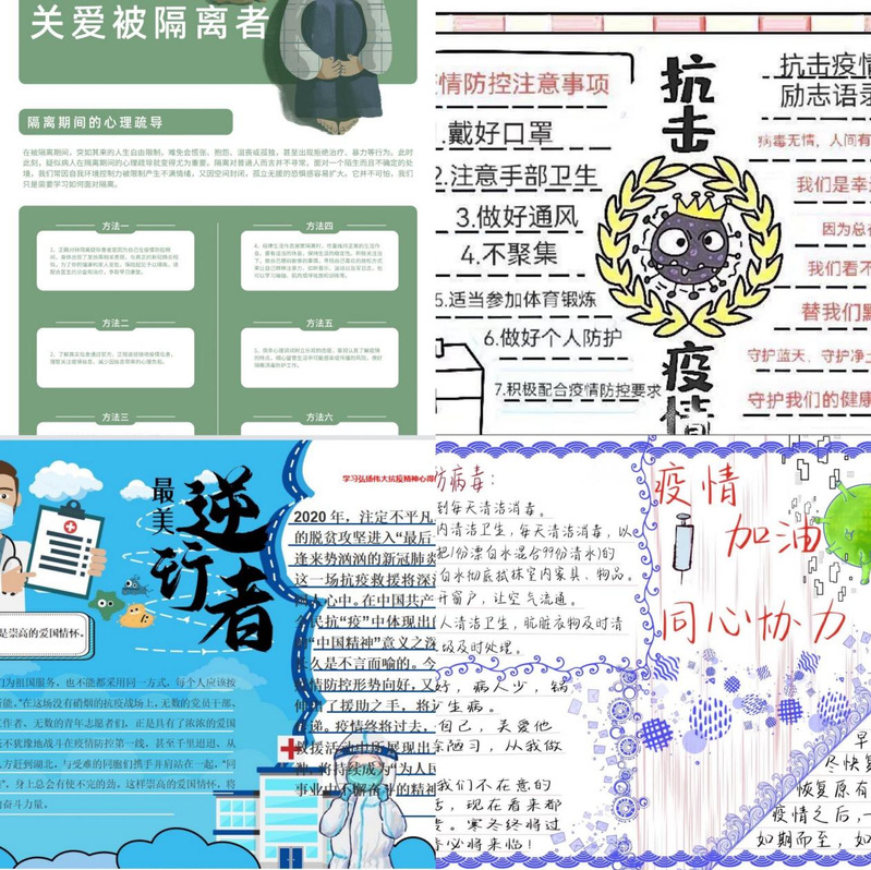 在“抗疫护心,坚定信心”手抄报征集活动中,收到了校本部和国际工程师学院校区20余名学生提交的作品。参与者利用课余时间搜集大学生心理健康知识、疫情防护知识,宣传疫情防控注意事项和抗击疫情励志语录,展示出青年大学生独特视角下的心理健康现状、问题和解决办法。