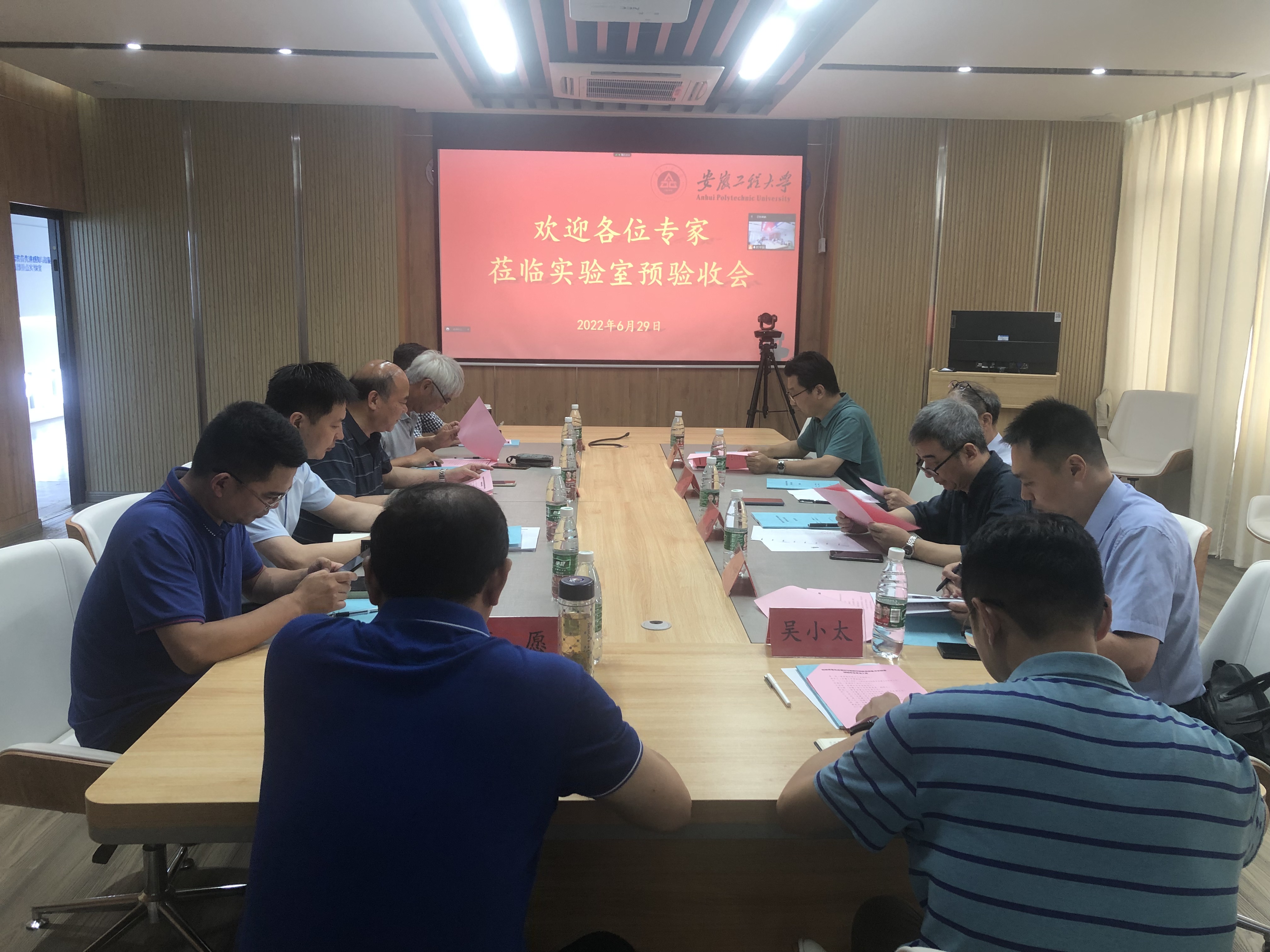 费为银对专家组莅临指导表示欢迎,希望专家组严格把关,提出宝贵意见和建议。预验收分两个阶段进行。第一阶段是现场考察,专家组仔细查看了实验室场地与环境、科研平台与条件、实验室规章制度与安全措施等,并与实验室师生进行了充分交流。第二阶段是听取汇报,专家组认真听取了实验室在科学研究、人才培养、成果转化、社会服务等方面的汇报,并对预验收相关材料进行了充分审查。