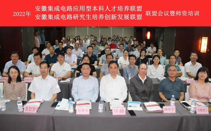 9月2日至4日,由合肥市产业投资控股(集团)有限公司、合肥市科创集团有限公司(合肥市人才集团有限公司)指导,安徽集成电路应用型本科人才培养联盟、安徽省集成电路研究生培养创新发展联盟、合肥国家“芯火”双创平台、安徽省半导体行业协会联合主办的第二届联盟会员大会暨第三期师资培训大会在合肥顺利召开,来自安徽省24所高校及11家集成电路优秀企业参会。我校 jav 集成电路系教师代表参加了该会。