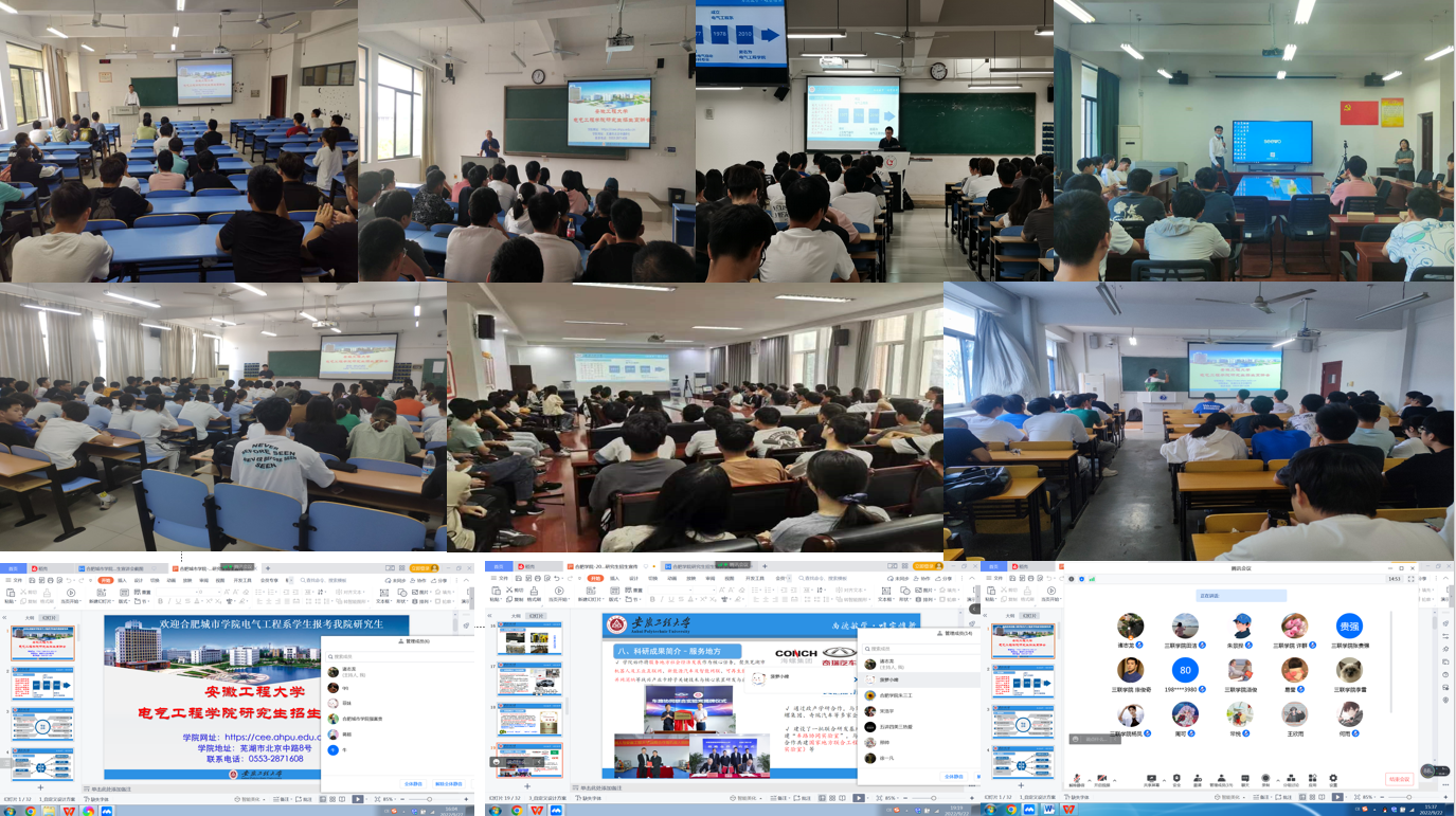为进一步提升研究生招生宣传影响力,扩大研究生招生生源,提高研究生招生质量, jav 于9月中下旬至10月上旬组织研究生导师瞿成明、诸志龙、孙新柱、代广珍、葛强、陶亮、李炜、余诺,分别赴淮北师范大学、合肥学院、安徽科技学院、巢湖学院、皖西学院、铜陵学院、池州学院、安徽信息工程学院、芜湖职业技术学院、安徽三联学院、合肥城市学院等11所高校开展2023年研究生招生宣讲。各位研究生导师克服疫情影响等不利因素,采用线下与线上相结合的方式,向各学校师生详细介绍了电气学院的学科研究方向、师资队伍、专业优势与特色、研究生培养方案、奖助体系和2023年研究生招生计划,并对意向考生提出的相关问题进行了详细解答。此外, jav 副院长葛愿赴南京参加哔哩哔哩平台组织的2023年研究生招生线上宣讲会(同步推送今日校园),并通过网络直播方式与意向考生进行了互动。本次研究生招生宣讲工作扩大了招生宣讲覆盖范围,提高了学院研究生培养工作的影响力,为学院2023年研究生招生工作打下了良好基础。