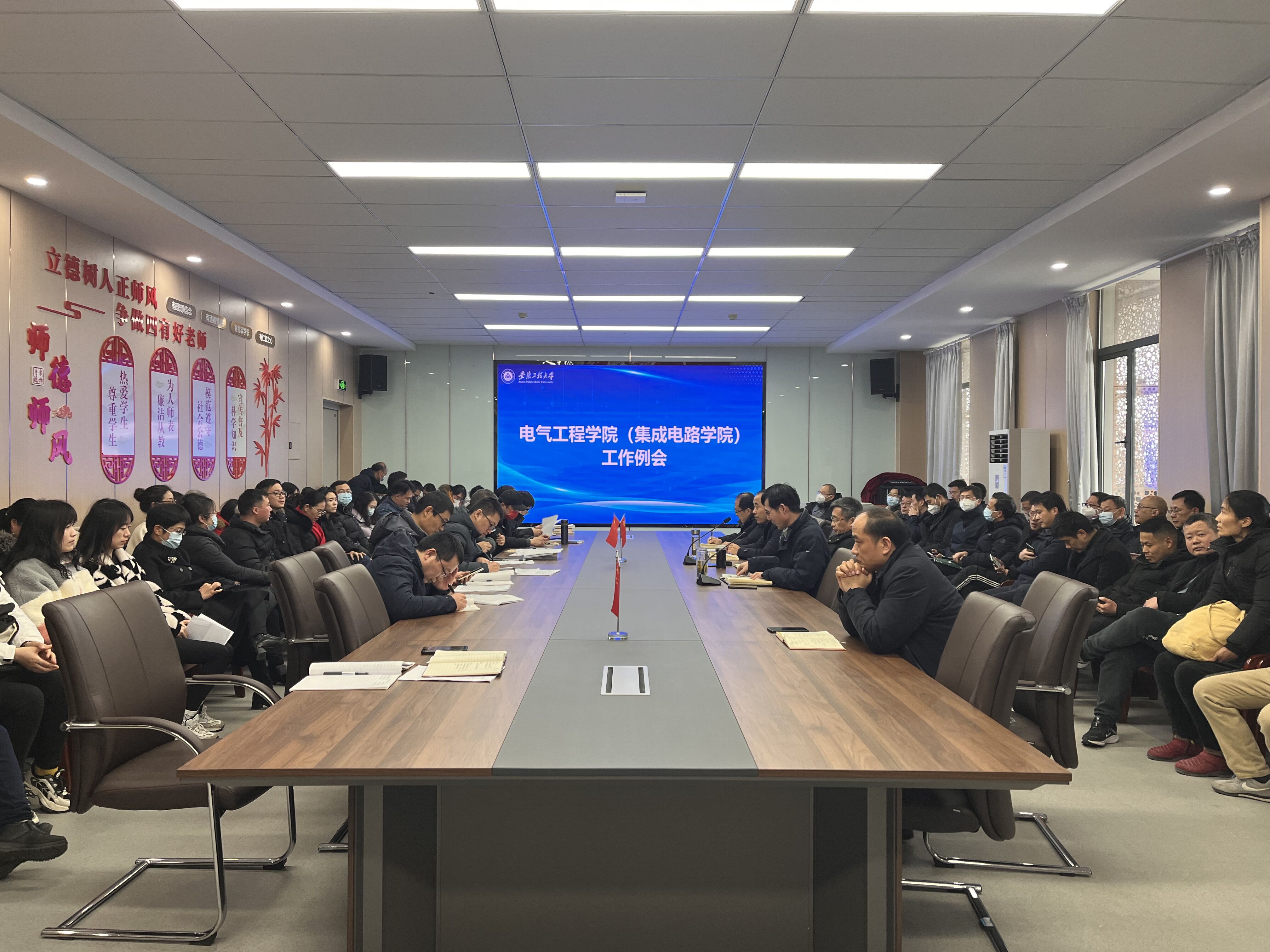 2月11日下午, jav (集成电路学院)在国际工程师学院校区龙胜楼206会议室召开2023年新学期教职工工作会议,学院党政班子成员和全体教职工参加会议。会议由学院党委书记杨会成主持。