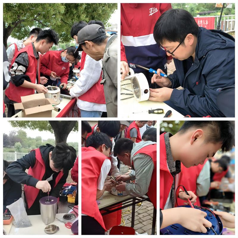 支部成员携带维修家电的基础工具、器件以及科普宣传手册到达社区并现场布置好家电维修服务点。在星辰社区负责人的协同下,支部成员分成两批开展志愿服务活动,一部分同学负责现场维修居民们有故障的家电,另一部分同学向居民宣传科普安全用电知识和正确使用维护家电的实用经验。