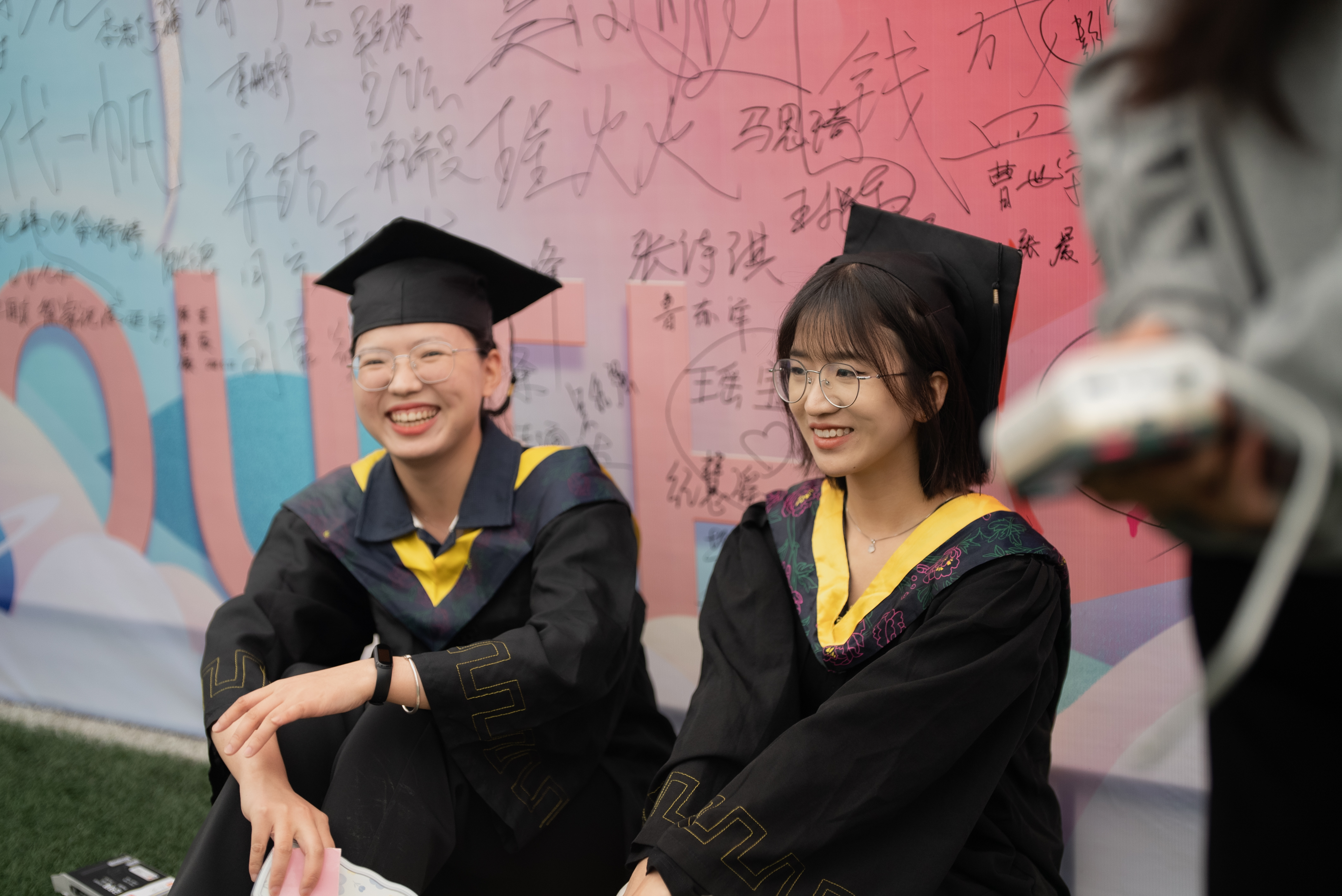 毕业典礼结束后,毕业生在毕业留言墙上签名、拍照留恋。希望同学们能将母校的叮咛收入人生的行囊,将大学的精神融入血脉,母校将成为你们永远的心灵港湾。未来,不论在哪里,不论你们选择了怎样的道路,当你们有一天相聚在这里,你们仍然有着同样的名字,你们都是电气人。