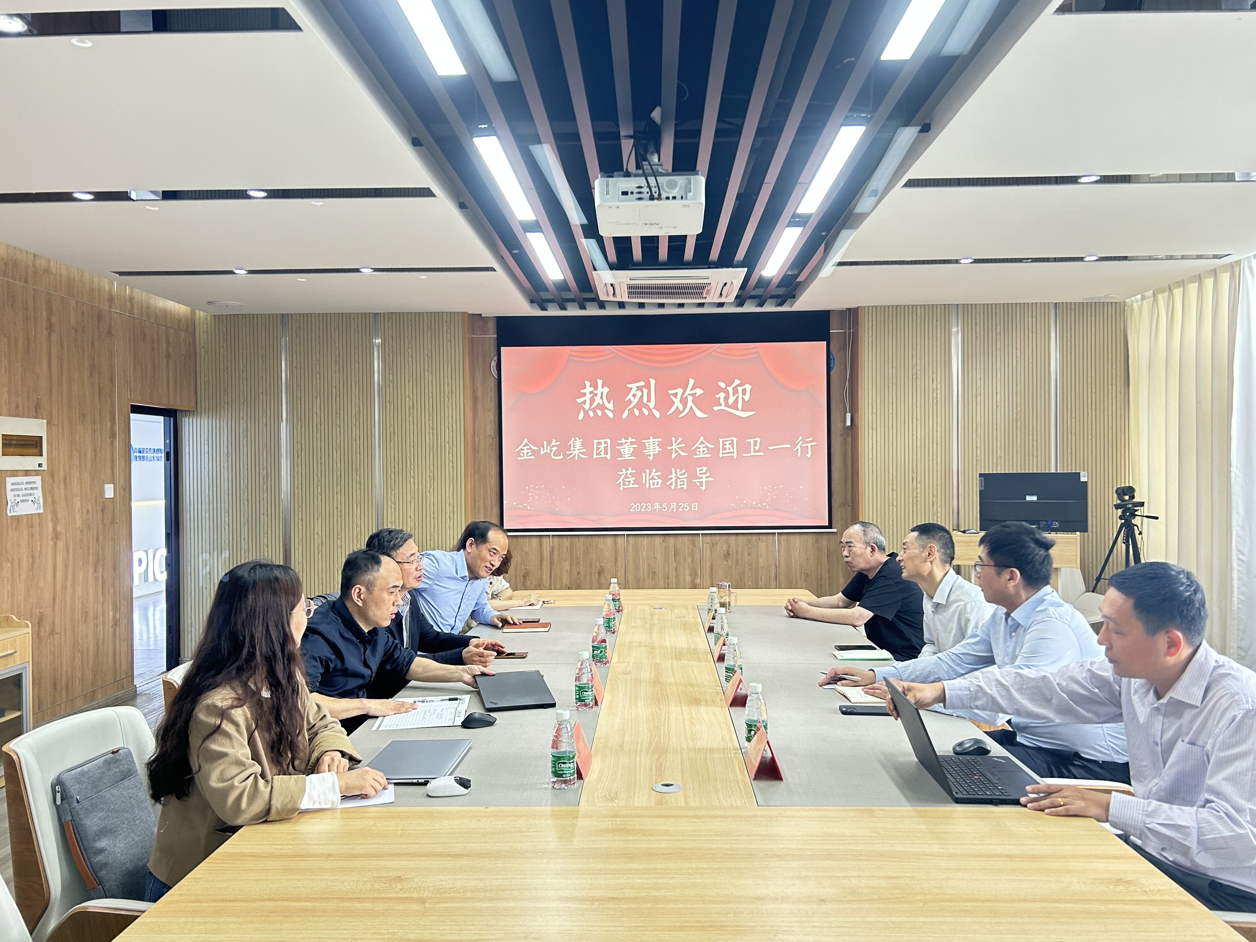 葛愿介绍了学院在深化校企融合、推进产学研合作、服务区域经济发展等方面的主要举措和相应成果。金国卫董事长介绍了金屹集团的产品布局与技术需求情况。随后,双方与会人员针对人才联合培养、学生实习就业、产学研合作等方面进行了深入探讨,达成初步共识与合作意向。座谈会前,金国卫一行参观了教育部重点实验室。