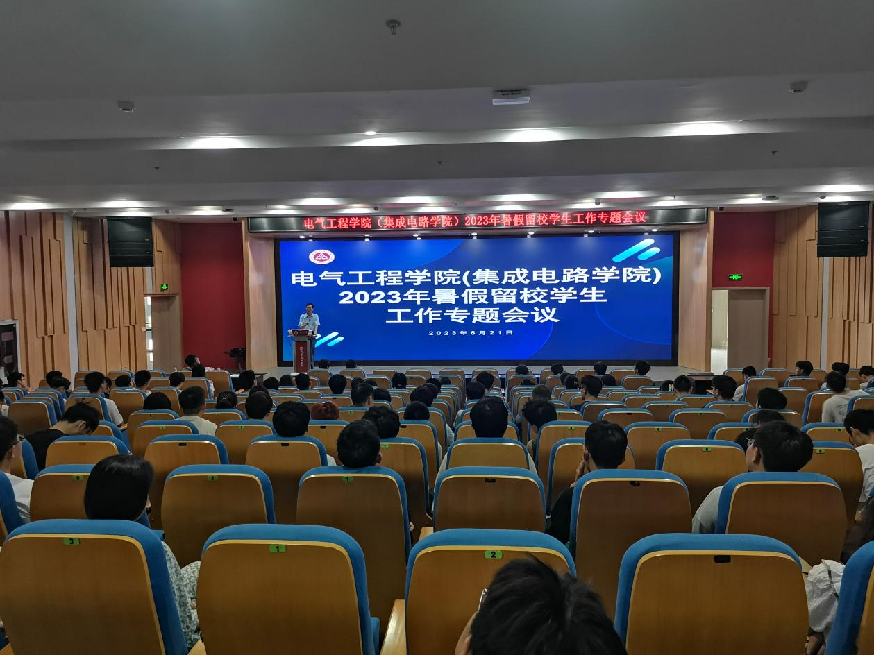 为进一步贯彻学校“三全六专”育人实践要求,落实学校《关于加强暑期留校学生教育管理的通知》精神,6月21日上午, jav (集成电路学院)在国际工程师学院大报告厅召开暑期留校学生安全工作专题会议,以增强留校学生安全防范意识,维护假期校园安全稳定。学院党委书记杨会成、党委副书记迟传德、全体辅导员及800多名留校学生参加了此次会议,迟传德主持会议。