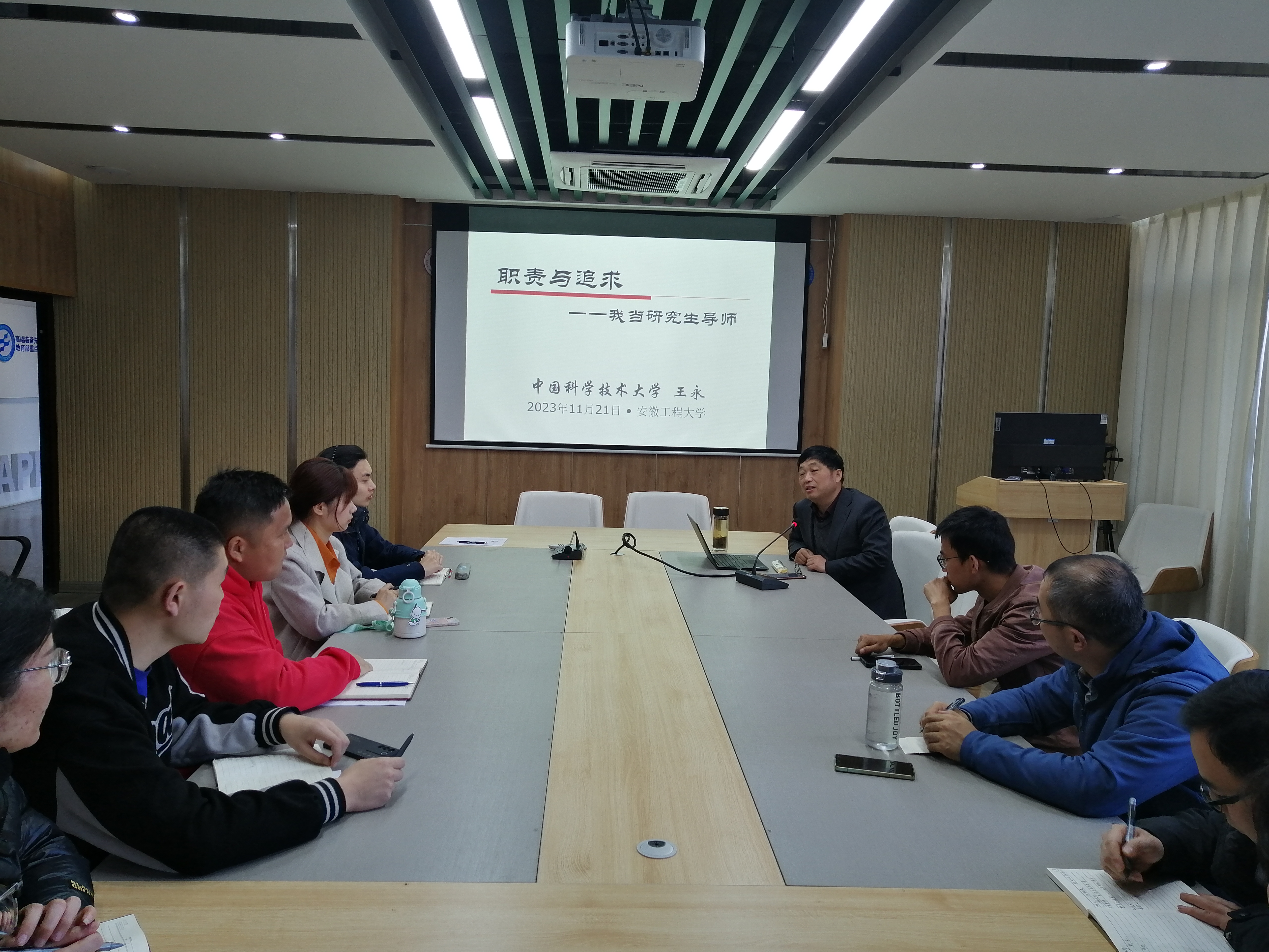 王永教授从研究生导师的职责和如何做好研究生指导工作两方面进行了报告。王永教授首先阐述了研究生导师在培养研究生过程中必须做好的各项重点工作,特别针对如何做好研究生学位论文的指导工作做了详细说明。同时,王永教授还对当前研究生的求学目的和学习现状进行了分析,指出要深入了解研究生,对不同类型的研究生采取有针对性的指导方法。王永教授还分享了自己所敬仰的好导师以及多年来培养研究生的经验做法,展示了导师如何与研究生沟通交流、开展合作研究,最终取得丰硕成果。王永教授的报告生动详实,具有深刻的启发意义,为学院新晋研究生导师做好研究生培养工作起到了重要的指导作用。