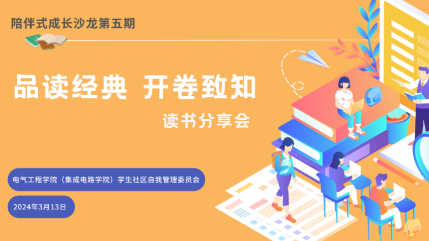 为推深做实学校党建“三抓”工作要求,强化“三全六专”育人实践,聚焦“和起来”,营造一站式学生和谐社区文化氛围,3月13日, jav (集成电路学院)在学院“青衿”一站式学生和谐社区开展“品读经典 开卷致知”读书分享会暨第五期陪伴式成长沙龙活动。