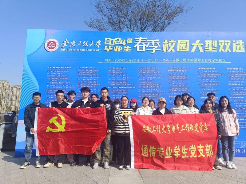党建引领促就业,党员服务暖人心。为全面贯彻党的二十大精神,进一步落实做细学校党建“三抓”工作要求,推进“三全六专”育人实践,3月20日, jav (集成电路学院)通信专业学生党支部积极组织并参与了2024届毕业生春季校园大型双选会(二)志愿服务活动,为求职者和企业之间搭建一座沟通的桥梁,展现了新时代青年的风采和担当。