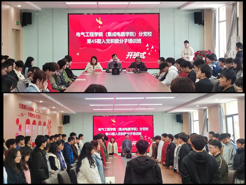 为深入学习贯彻习近平新时代中国特色社会主义思想和党的二十大精神,深入贯彻落实新时代党的建设总要求和新时代党的组织路线,做好对入党积极分子的培养教育工作,2024年4月9日下午, jav (集成电路学院)分党校第45期入党积极分子培训班开班式在国际工程师学院龙胜楼206会议室举行。
