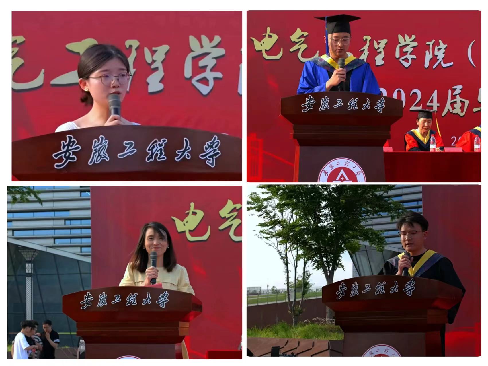 通信专业教师代表徐可老师以过来人的身份,从“感谢”“希望”“期盼”三个维度向毕业生们发表了深情的寄语。她鼓励大家要珍惜大学时光,不忘初心,继续前行。辅导员代表朱雪梅老师为毕业生们送上了离别寄语,表达了对未来的美好祝愿。勉励大家“不务空名,菲言厚行”,做褪去长衫的人,“蔓蔓日茂,芝成灵华”,做努力的人,“小成于智,大成于德”,做周全的人,“木槿昔年,浮生未歇”,做感恩的人,“眼有星河,笑有清风”,做快乐的人,云程发轫,万里可期,做永远的电气人。本科毕业生代表曹恒恒同学和研究生毕业生代表李兆乾同学分别上台发表了毕业感言。他们回顾了自己在jav