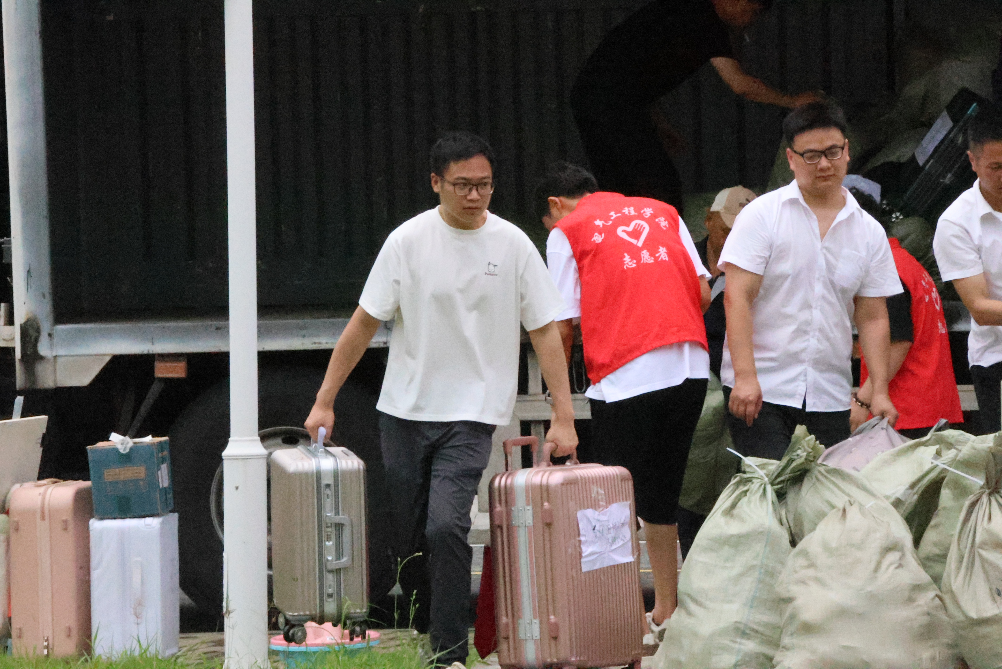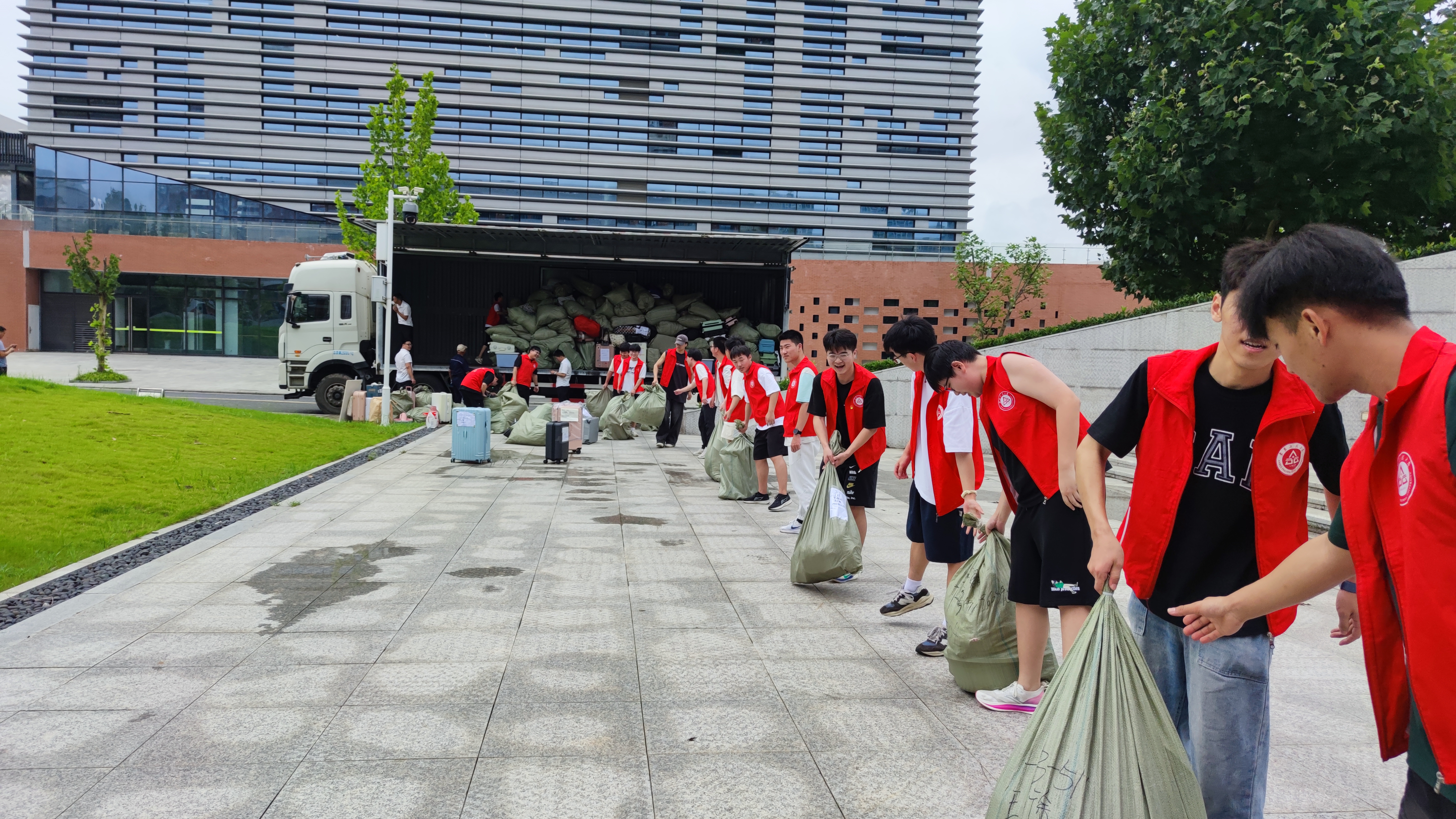 风雨无阻,协同配合。当天天气变化极快,学院、校区管委会、物业、调度公司等通力合作,搬迁工作抢在暴雨间隙完成。校本部学生干部志愿者争分夺秒将行李运上车,到达国际工程师学院校区后,辅导员和学生党员突击队组成“人工传送带”,迅速将行李手递手传送到寝室楼下,并快速分类,准确将行李送到学生宿舍。集成电路学院团委副书记卢洁说,这既是一次生动的劳动教育课,又是一堂给全体党员、团员的青春思政课,今天从暴雨到烈日,从雨水到汗水,全体师生经受住了考验,风雨无阻,用实际行动为节日献礼。