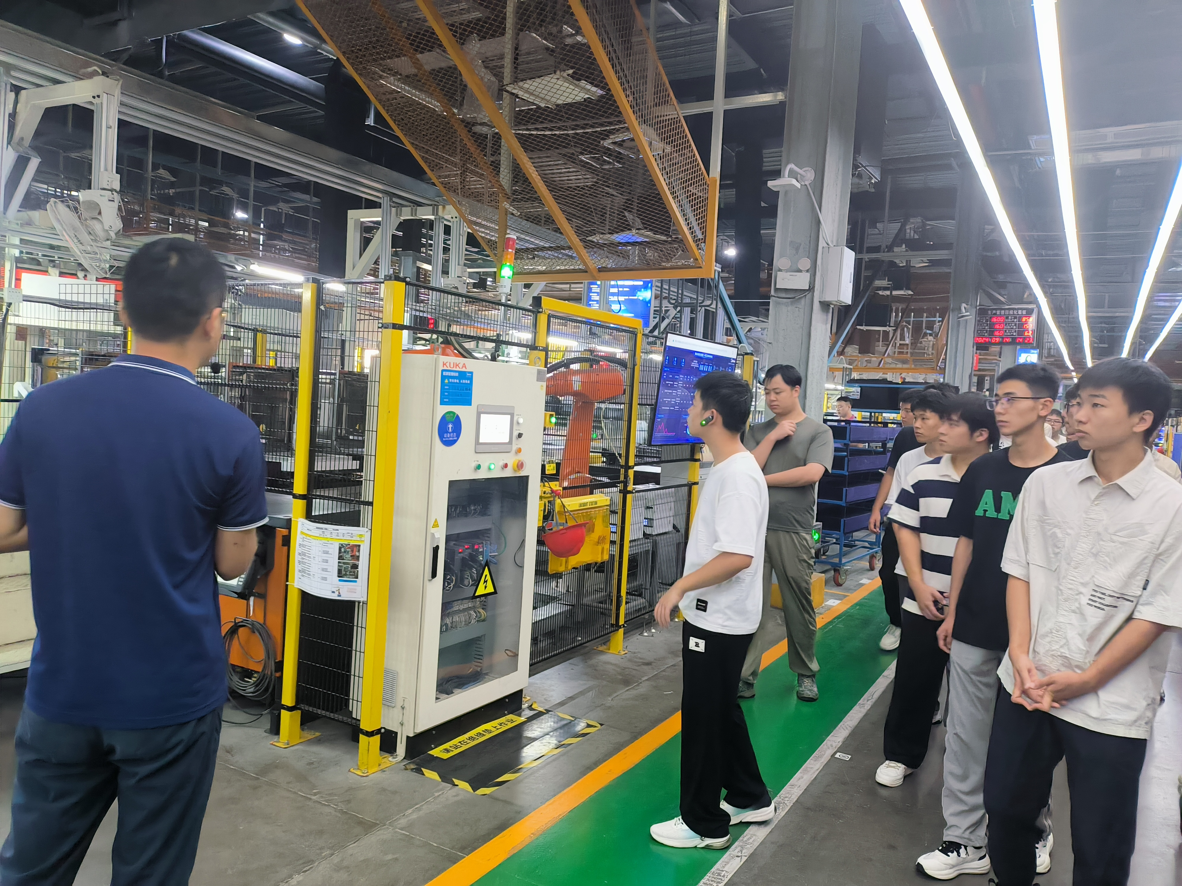 随后,同学们深入工厂流水线,亲眼见证了从原材料到成品的全自动化生产过程。高度自动化的机器人手臂灵活作业,高效严谨的生产流程,让同学们真切感受到了理论知识转化为实际生产力的魅力,大大提升了同学们对未来职业发展的憧憬。