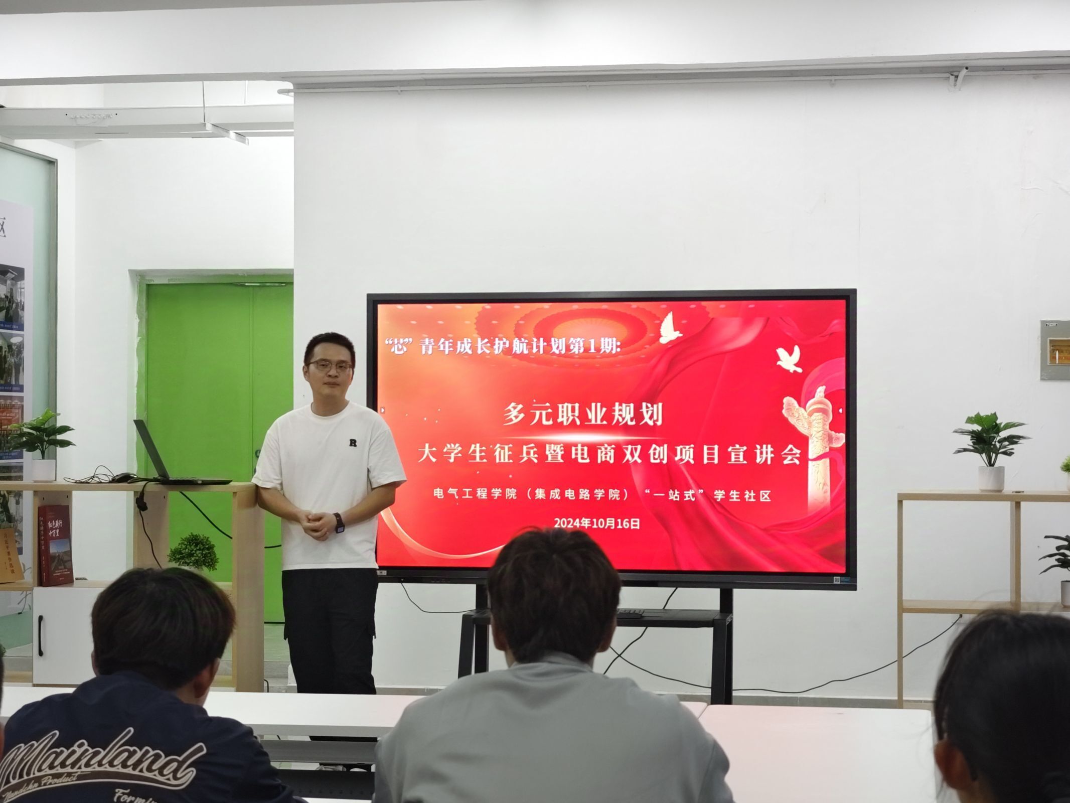 为进一步为学生提供多元化的职业规划指导,做实征兵工作,做强创新创业教育,10月16日, jav (集成电路学院)成功举办了首期芯青年成长护航计划活动。活动在国际工程师学院校区“一站式”学生社区总站举行,邀请了阳岚、高原两位老师分别就大学生征兵政策和双创工作开展宣讲。活动吸引了众多学生参与。