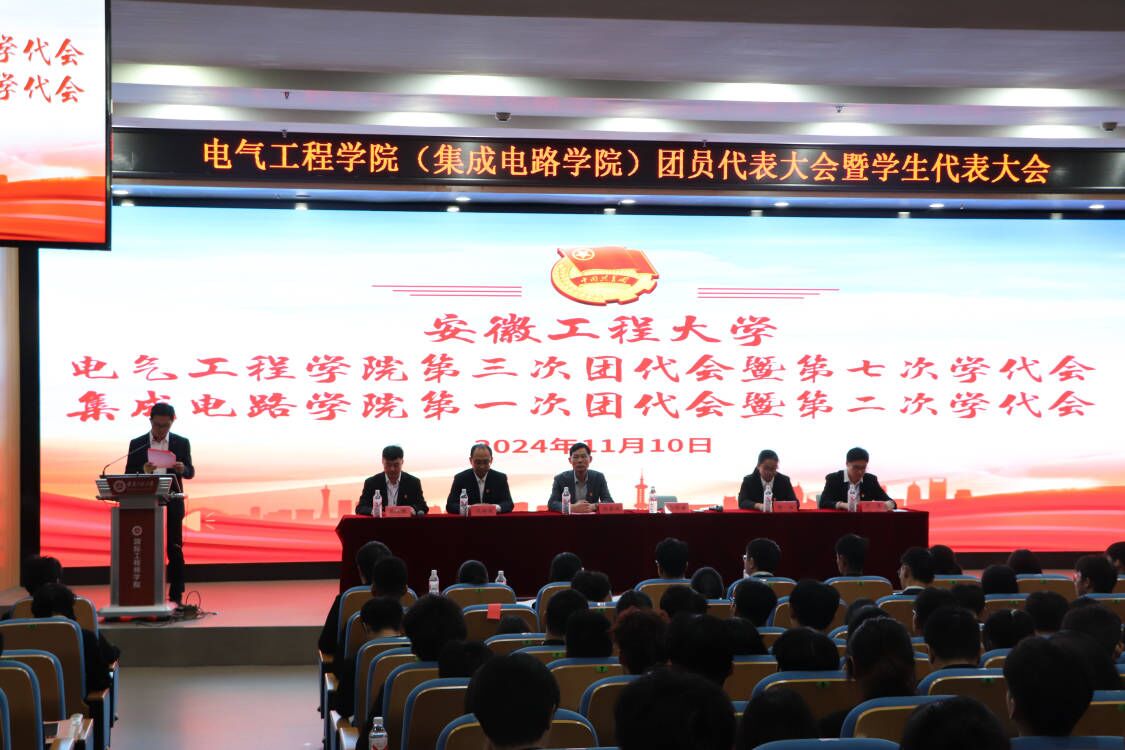 11月10日上午,在庄严的国歌声中,共青团 jav 第三次代表大会暨第七次学生代表大会、集成电路学院第一次代表大会暨第二次学生代表大会在国际工程师学院校区赤铸报告厅隆重召开。校团委书记李恒奎,校学生会主席杨扬,学院党委书记杨会成,党委副书记迟传德,辅导员代表以及两院全体大会代表参加开幕式。