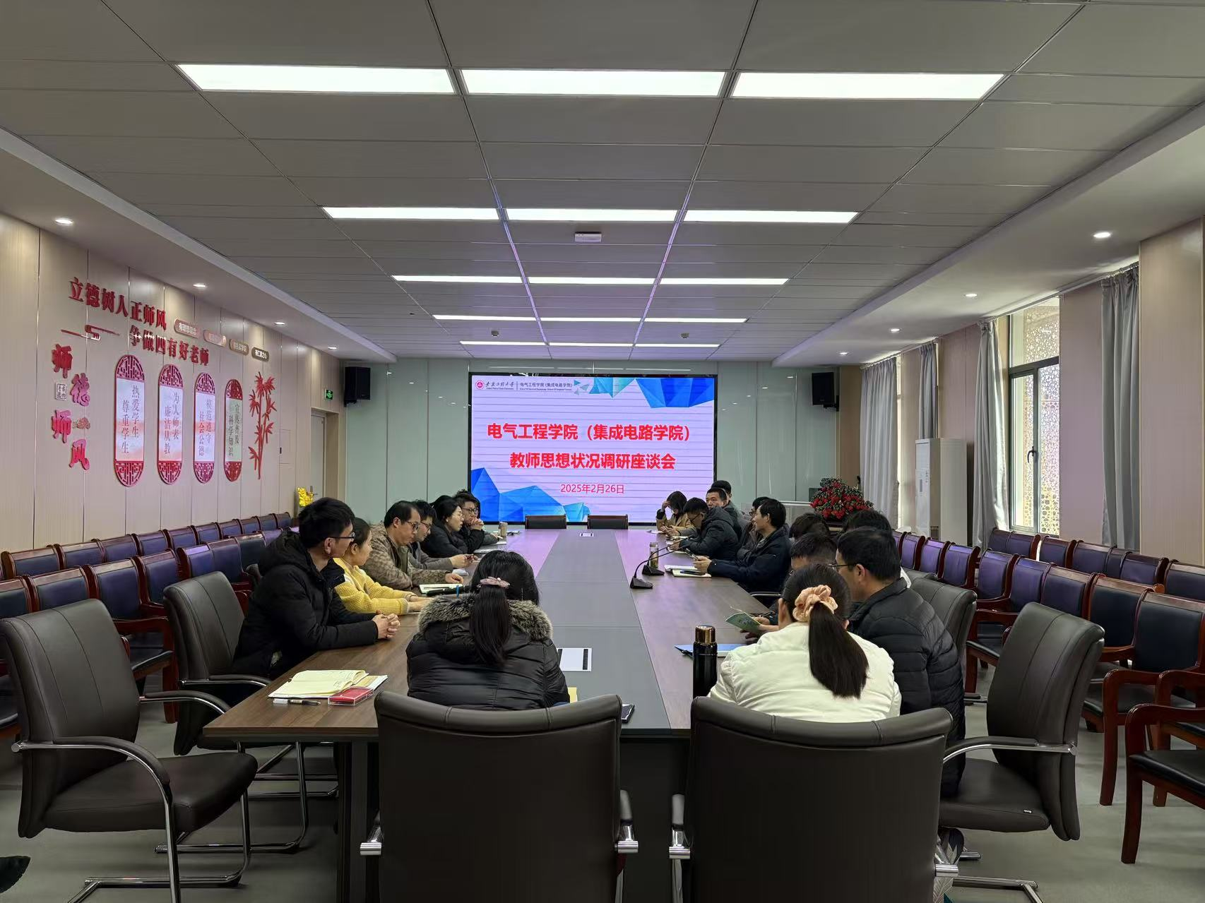 为深入了解新学期教师思想动态、心理状况以及合理诉求,营造团结奋进的育人环境,2月26日下午, jav (集成电路学研)召开教师思想状况调研座谈会。会议由学院党委书记杨会成主持,各系部(中心)教师代表及2024年入职博士教师参加了座谈会。