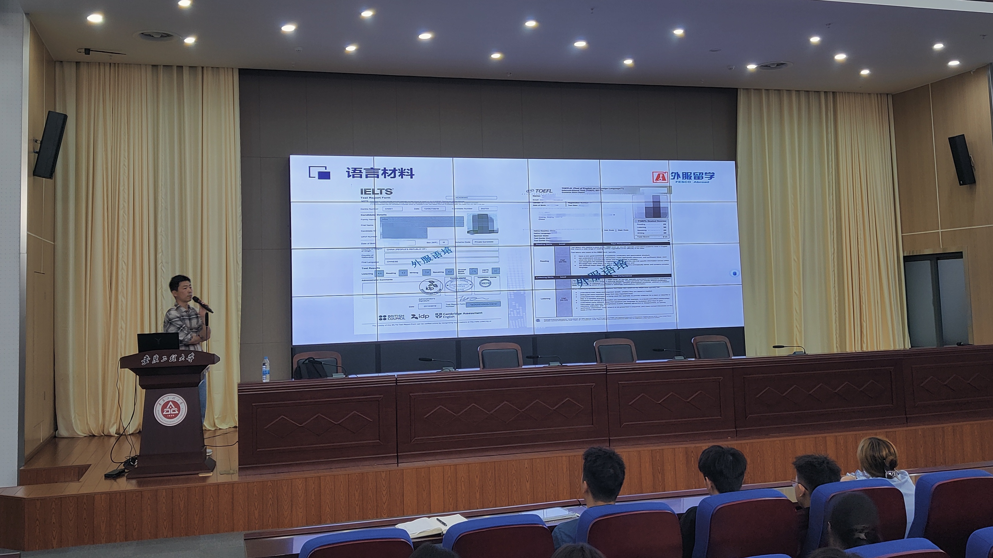 外服留学工作人员系统讲解了留学的多种方式、申请条件及成功案例,结合不同国家和地区的留学特点,为学生们梳理了大学期间需完成的语言考试、成绩提升及时间规划等关键环节。