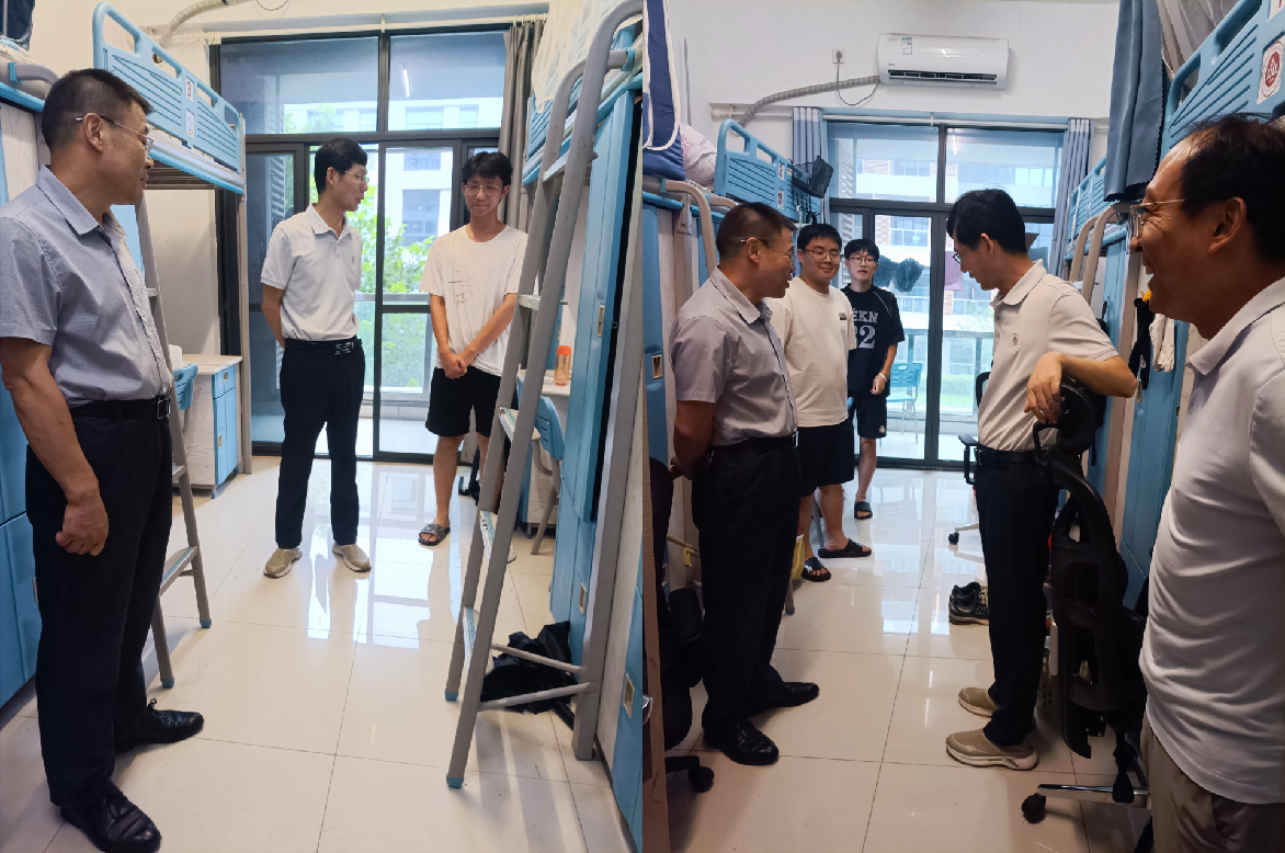 学院领导冒雨走访各搬迁点,叮嘱学生注意安全,并进入宿舍逐一看望搬迁学生。