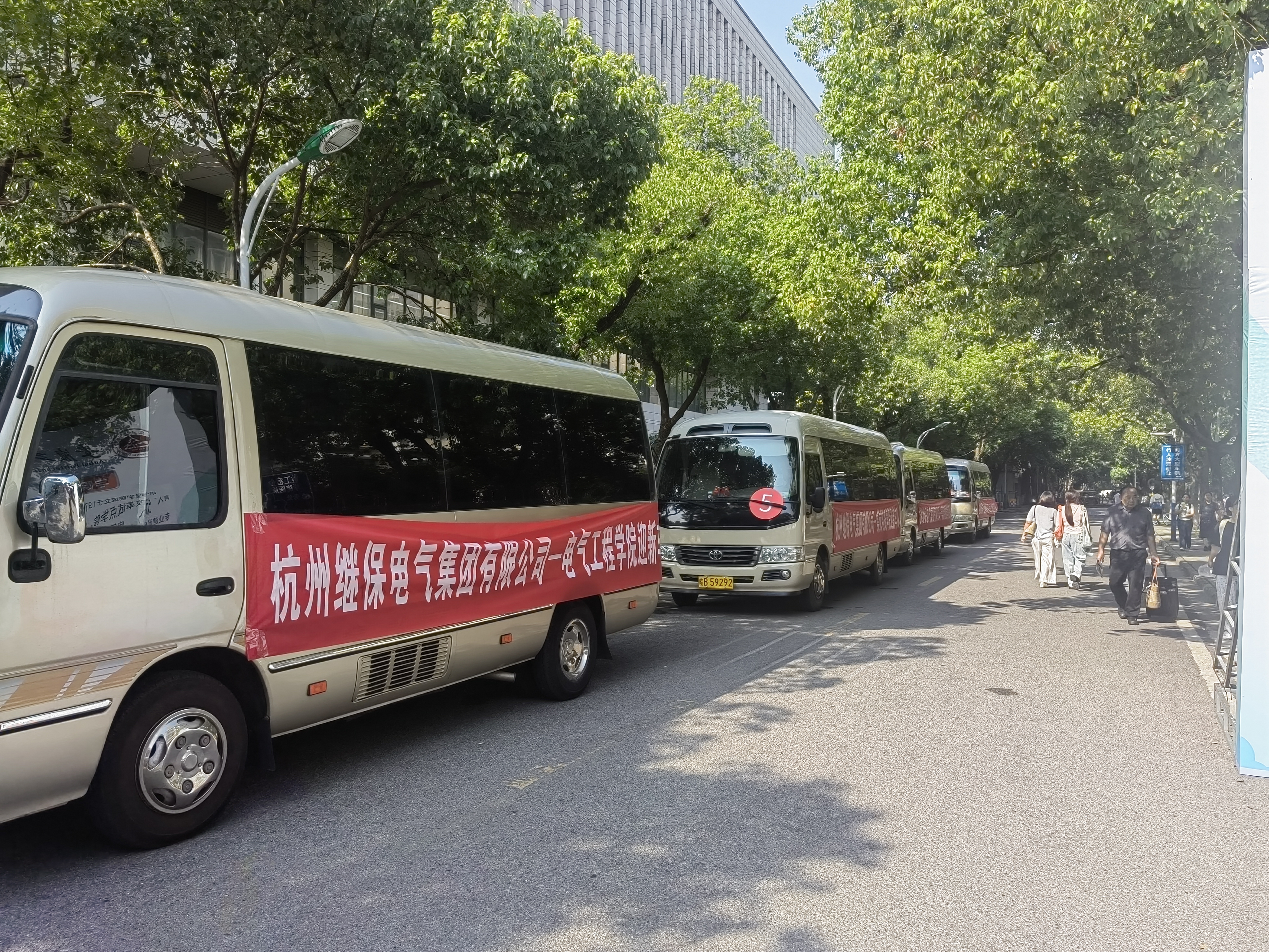 携手校友企业杭州继保电气集团调配“爱心直通车”,在宿舍与报到点之间循环接驳,行李直达寝室,实现“报到——入住”一站式无缝衔接。