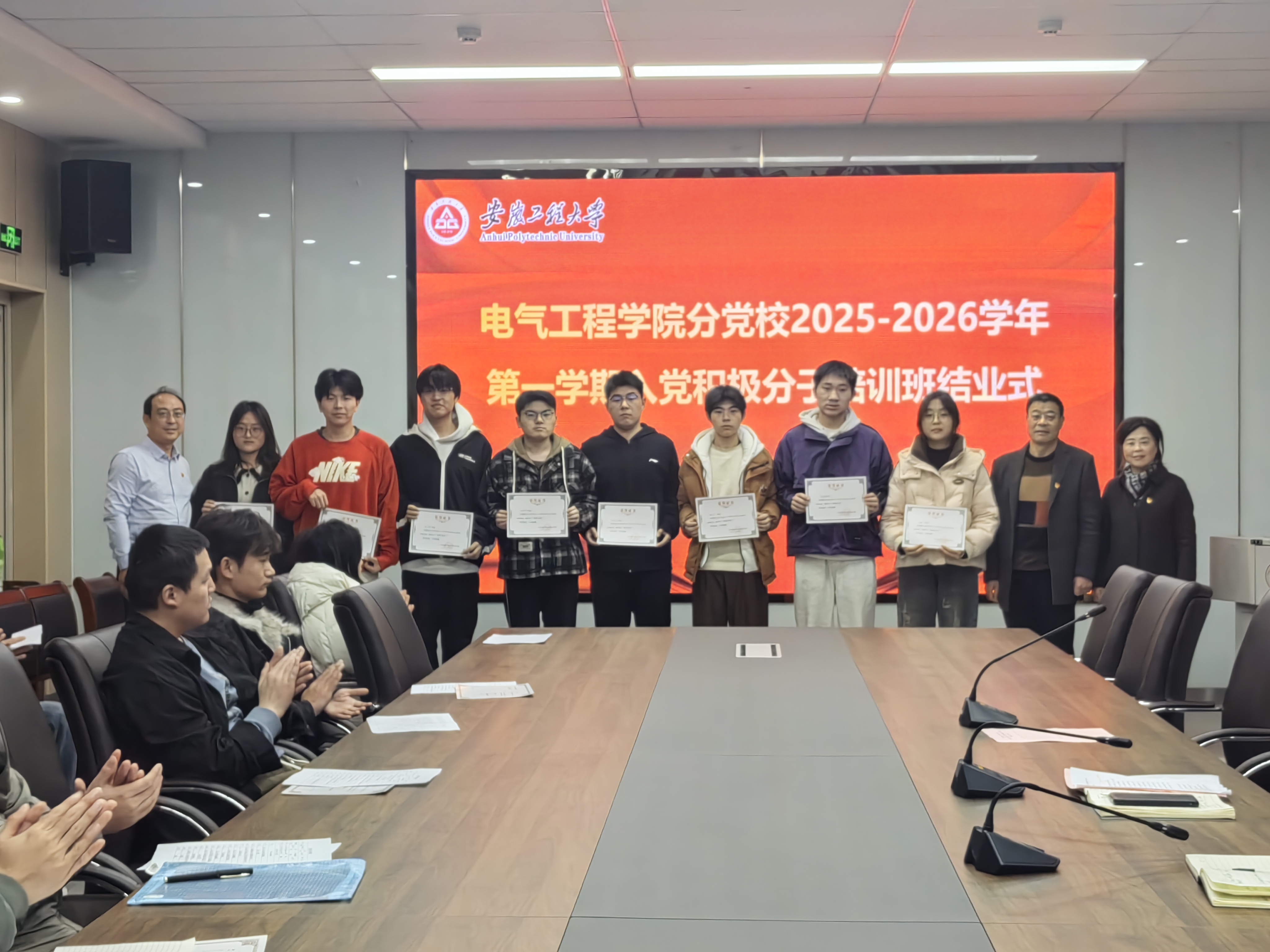 12月10日下午, jav 分党校2025-2026学年第一学期入党积极分子培训班结业式在国际工程师学院校区龙胜楼206会议室举行。学院党委书记张春、党委副书记迟传德、副处级组织员吴正霞,培训班班主任及全体学员参加。