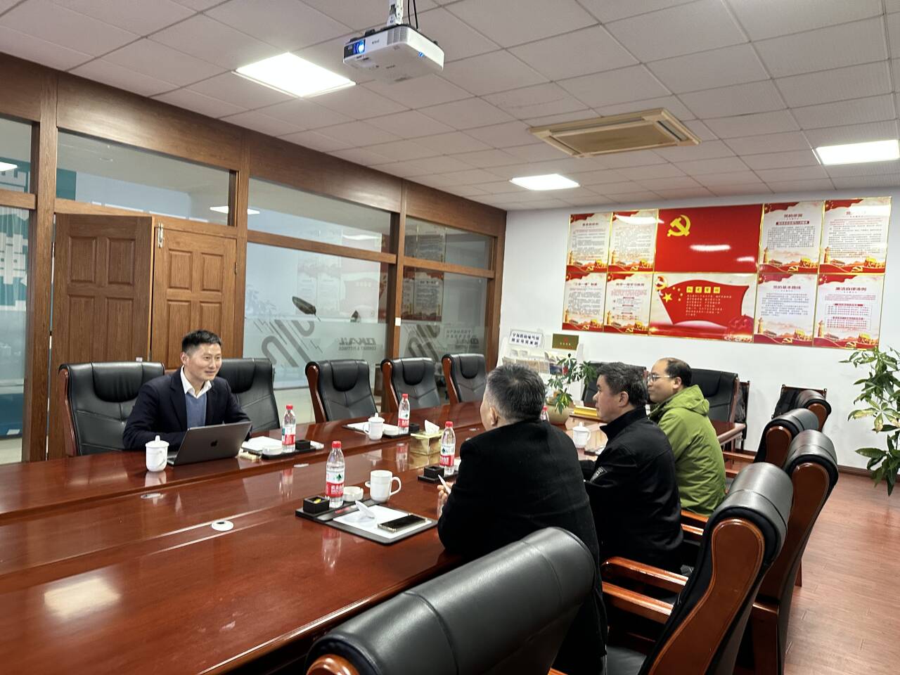 走访过程中,杨晓凡教授一行在李中祥校友的陪同下,实地参观了公司的生产车间、研发中心与党建文化阵地,详细了解了企业的生产运营、技术创新、市场布局及党建工作开展情况。座谈会上,双方围绕校企合作、市场推广、技术难题攻关、共建平台搭建等核心问题深入交换意见。李中祥校友深情回顾了在母校的求学时光,他表示,母校的教育培养为其创业之路奠定了坚实基础,始终感恩母校的栽培,希望能以实际行动反哺母校,通过校企合作助力学弟学妹成长成才。