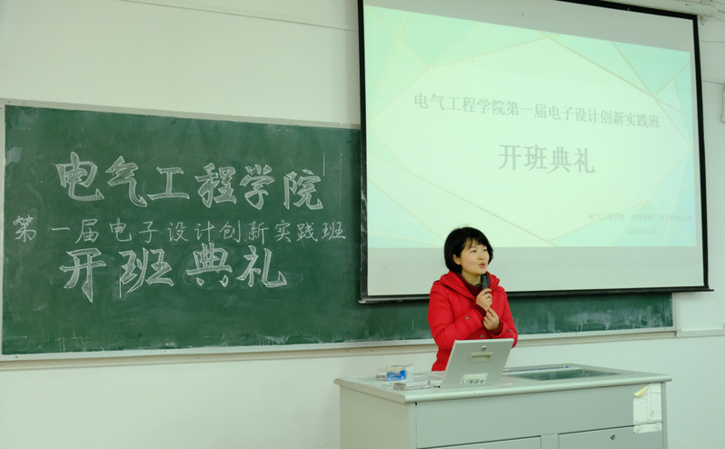 最后,郭全根要求学员们规范行为,遵守纪律;鼓励同学们将创新运用到自己的专业中,真正地做到格物致知、学以致用;并预祝第一届电子创新实践班取得圆满成功。