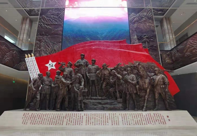 大别山安徽红色区域中心纪念馆以“红色中心,峥嵘岁月”为主题。团队成员参观了“序厅”“星火燎原,红色中心”“艰苦征战,红旗飘扬”“同仇敌忾,英勇抗日”“千里挺进,逐鹿中原”“薪火相传,红源流长”“红色传承,绿色发展”七大主题展区。馆内通过场景、雕塑与数字多媒体等方式的展示,让团队成员重温了那段炮火连天的革命战争年代,真切感受到英勇的霍山儿女为了革命的胜利誓死如归、可歌可泣的英勇事迹。
