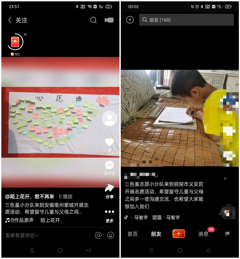 实践活动结束后,团队成员将孩子们写信时的感人场面,活动完结后的心得体会等内容,通过抖音、公益直播等新媒体方式传播出去。在征得留守儿童许可的前提下,将一些感人肺腑的信件刊登在微信公众号上,呼吁社会公众增强对农村留守儿童的关注。