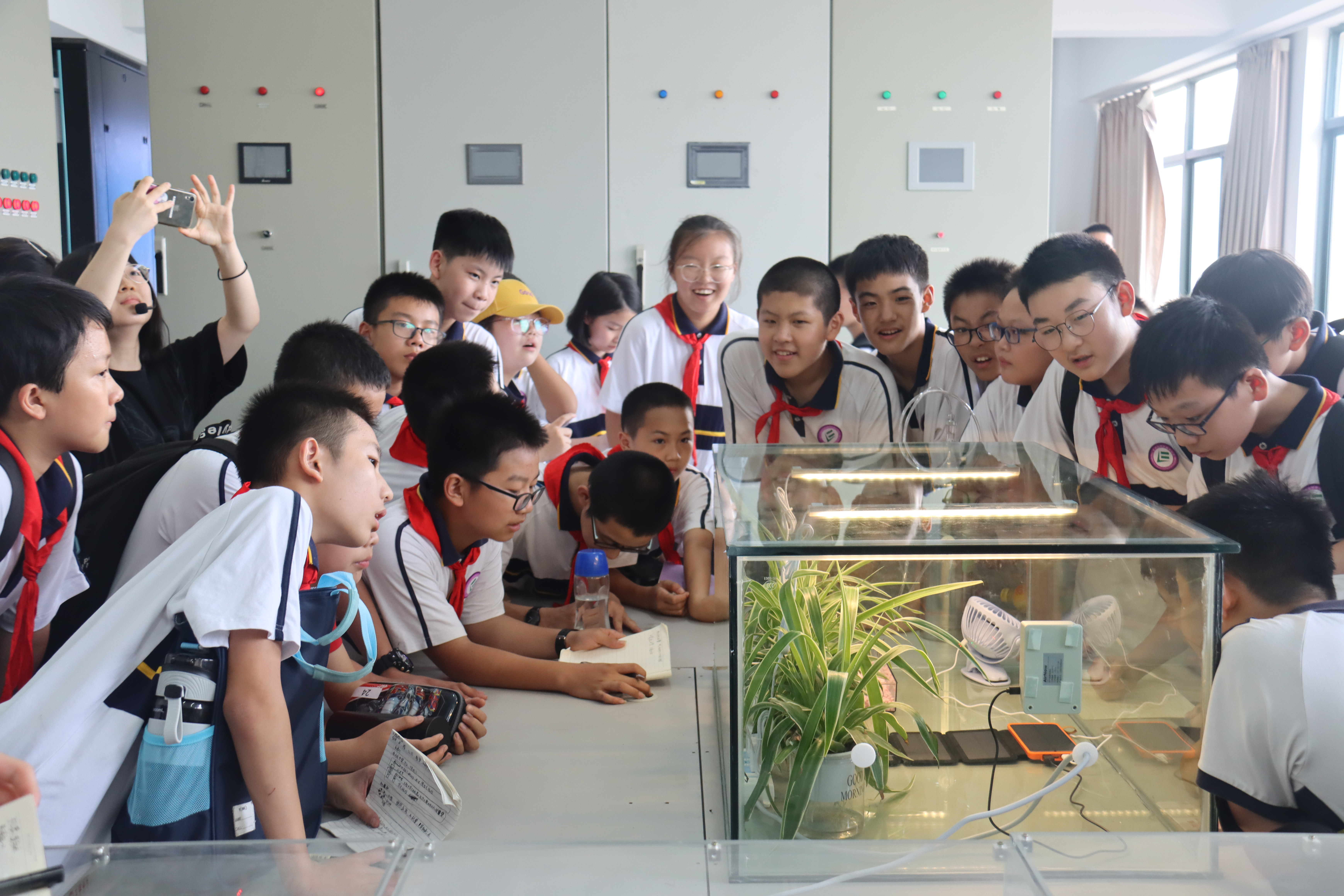 9月15日下午,芜湖城东附外科创班51名中学生在老师的带领下来校开展主题为“迈向高水平科技自立自强”的全国科普日活动,期间到“高端装备先进感知与智能控制”教育部重点实验室参观了“碳中和”科普装置。
