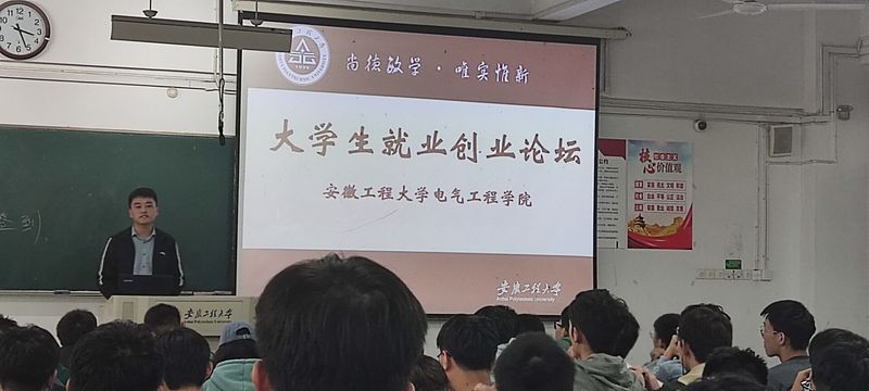 11月17日, jav 在6教111举办大学生就业创业论坛活动。我校2015级电科专业毕业生、现任芜湖宏景电子股份有限公司系统工程师李广赫应邀担任主讲。活动由2021级辅导员欧晓静主持,部分21级新生参加。