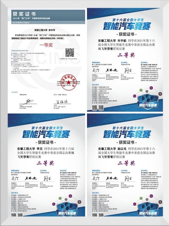 自2021年8月以来,全国大学生学科竞赛各个赛事获奖名单的陆续公布, jav 研究生在第十五届“西门子杯”中国智能制造挑战赛、第十六届全国大学生智能汽车竞赛和第二十三届中国机器人及人工智能大赛三项赛事中均有斩获,分别取得国家一等奖1项、国家二等奖1项和国家三等奖1项的佳绩。
