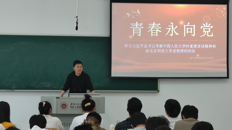 5月4日下午,辅导员黎新宏、张亚暾召开主题班会,专题学习习近平在中国人民大学考察时的重要讲话精神。学生党员戚宇帆说,要更加紧密地团结在以习近平同志为核心的党中央周围,励志勤学,向英雄学习、向前辈学习、向榜样学习,不怕苦、不畏难,敢于担重任、挑大梁,争做堪当民族复兴重任的时代新人。