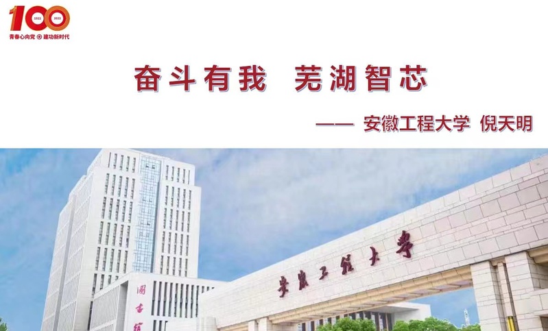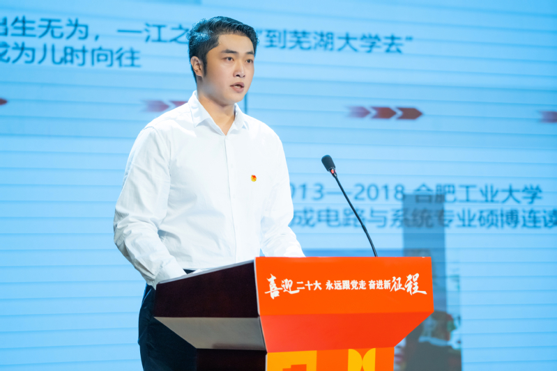 5月13日上午,芜湖市 “喜迎二十大、永远跟党走、奋进新征程”五四主题团日活动在芜湖二中西洋湖校区报告厅举行。 jav 教师倪天明作为青年代表应邀参加并以《奋斗有我 芜湖智芯》为主题发言。