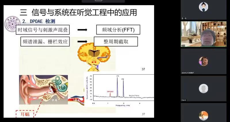 宫老师结合自己听觉系统的检测和康复和认知工程的研究方向,从信号的简单运算如何发挥大的作用,理论知识如何转化落地为实物,为同学们上了一次生动有趣、有料有用的,科研结合工程应用,理论落地于实践的专业课。