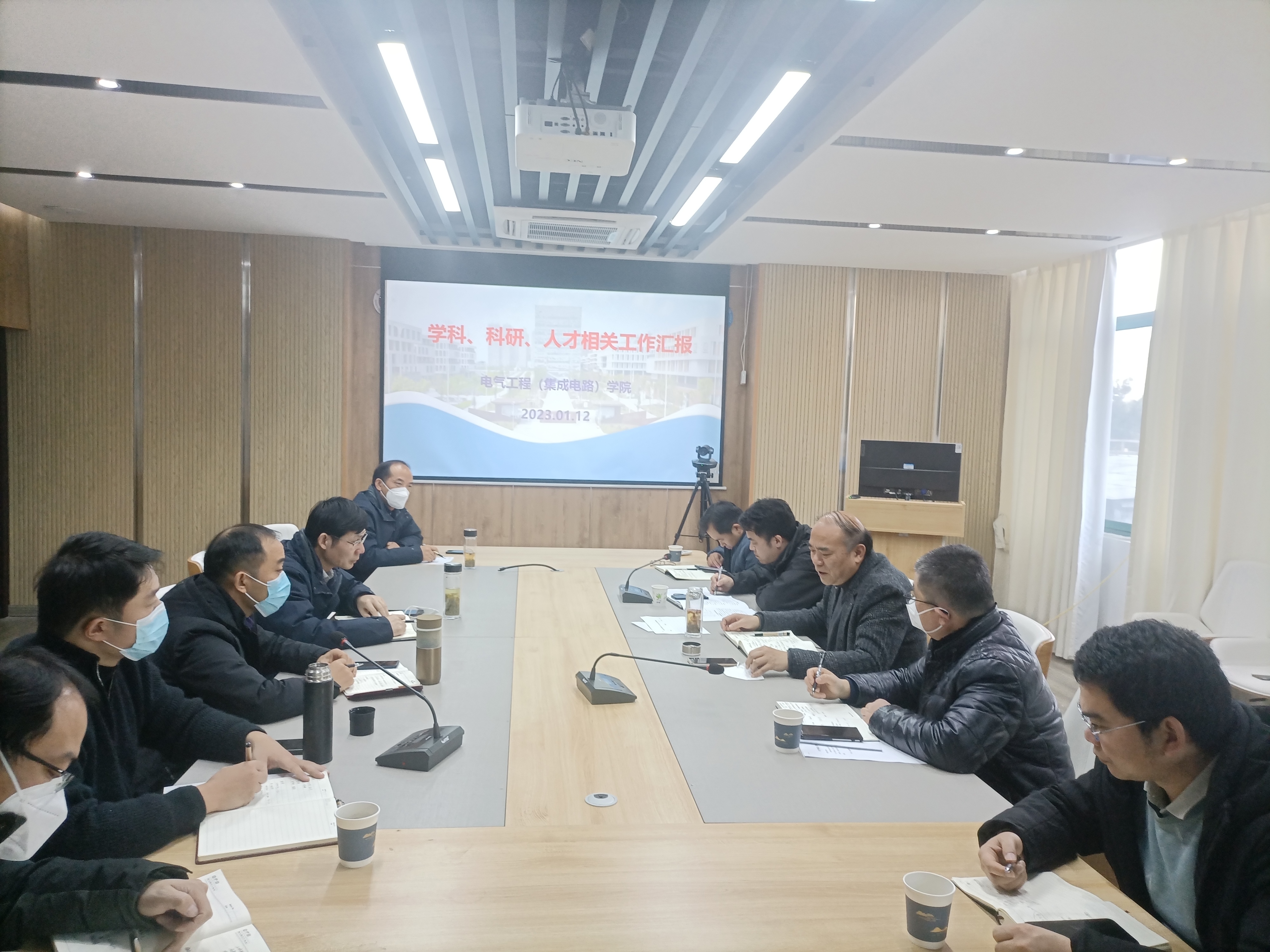 1月12日上午,校党委常委、副校长费为银率科技处、研究生部、人事处等相关职能部门领导赴 jav (集成电路学院)调研指导学科、科研、人才工作。 jav (集成电路学院)领导班子成员及相关骨干教师参加调研会。