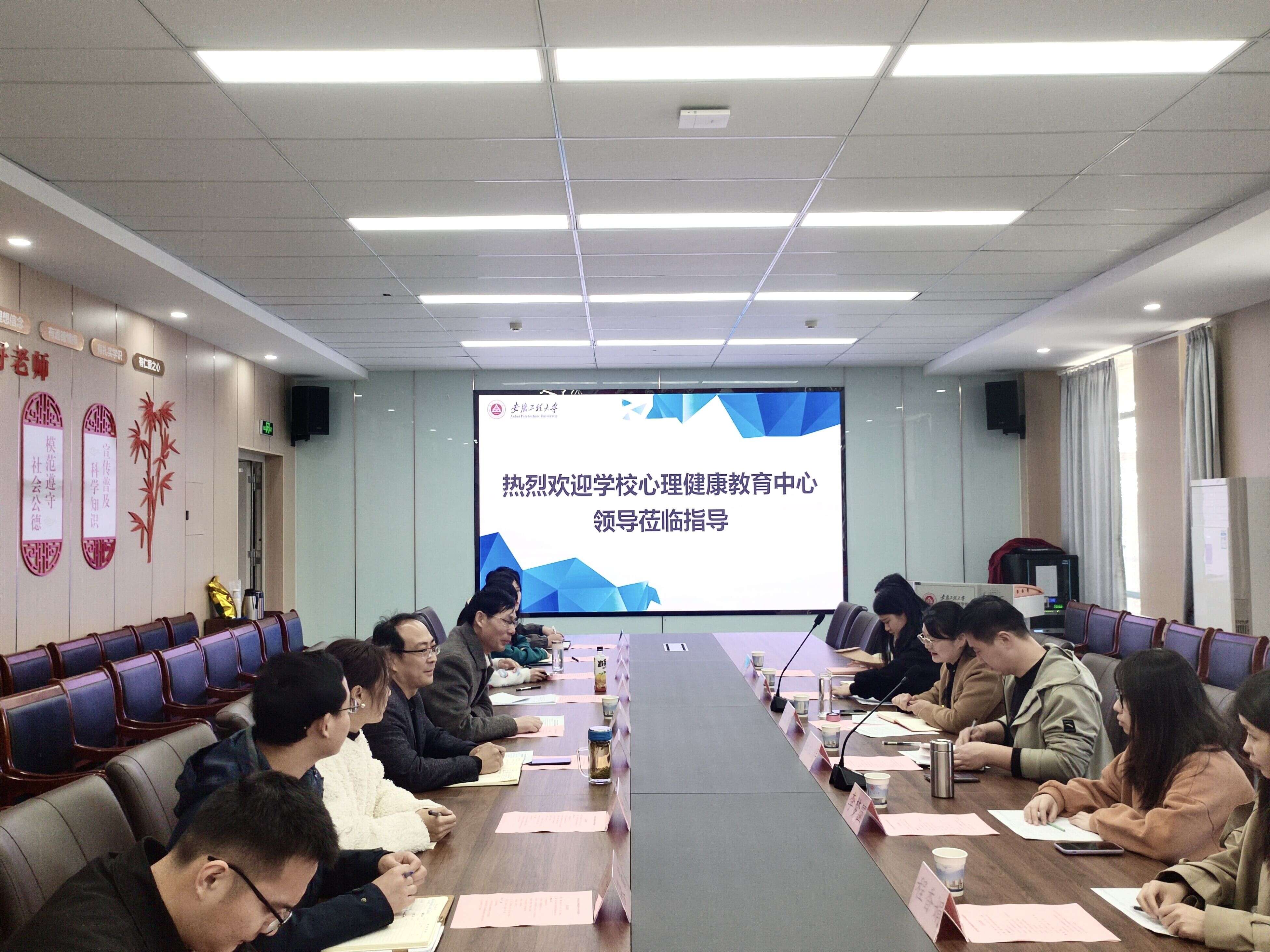 为深入学习宣传贯彻党的二十大精神,进一步落实学校“三全六专”育人实践工作要求,强化大学生心理健康教育和精神卫生工作,2023年3月15日,学校心理健康教育中心副主任金艾裙、杜松涛一行6人到 jav (集成电路学院)开展心理健康教育专题研讨,研讨在国际工程师学院龙胜楼206会议室进行。学院党委书记杨会成、学院党委副书记迟传德、全体辅导员参加。