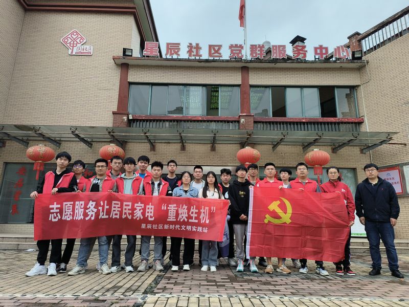 支部成员携带维修家电的基础工具、器件以及科普宣传手册到达社区并现场布置好家电维修服务点。在星辰社区负责人的协同下,支部成员分成两批开展志愿服务活动,一部分同学负责现场维修居民们有故障的家电,另一部分同学向居民宣传科普安全用电知识和正确使用维护家电的实用经验。
